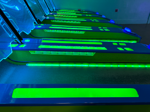 Framing (the doorway frames the inside of the arcade), Perspective (view looking into the arcade), and Artificial Light (lighting within the arcade).