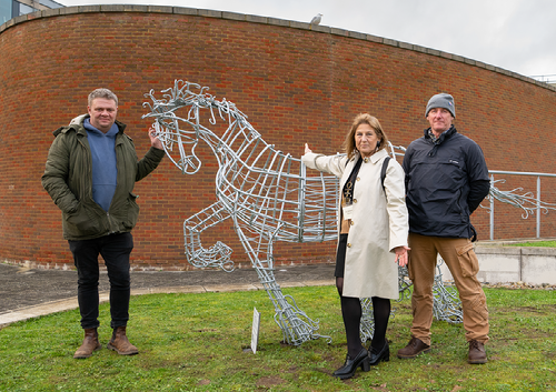 Priscilla, the Queen of the South, a sculpture of a Gypsy horse by Romany artist, journalist and activist Jake Bowers, was unveiled on Friday 23 February. The sculpture, located outside the Jubilee Building for the coming year, is part of the National Trust project, ‘Changing Chalk Cultural Heritage’. Unveiled during the Deemed Dirty symposium, the sculpture reflects the University’s continuing pledge to promote awareness and celebrate our campus, local, and regional Gypsy, Roma, and Traveller (GRT) communities.