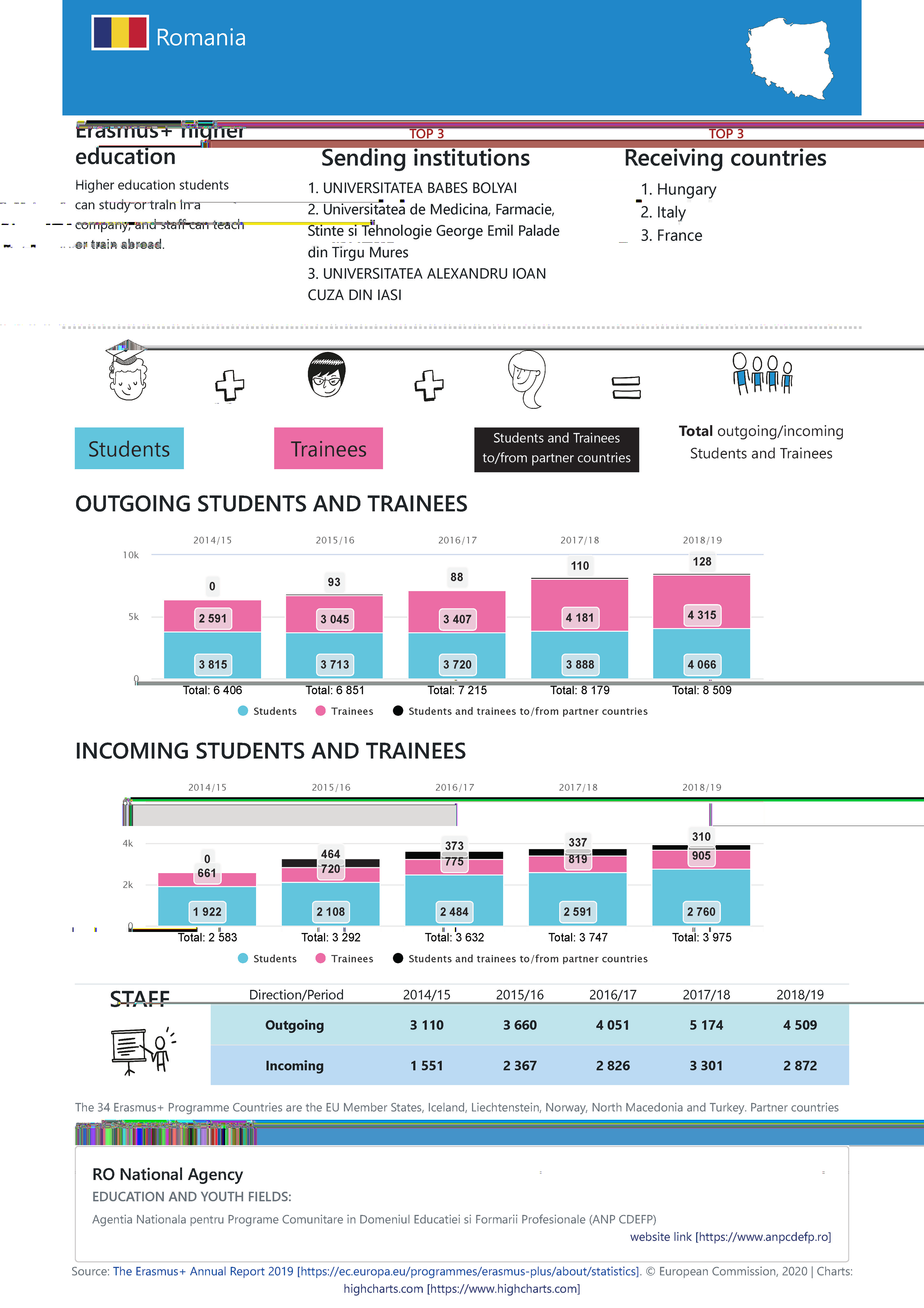 La sfârșitul lunii decembrie 2020, au fost anunțate rezultatele procesului de reînnoire a Cartei Universitare Erasmus pentru noul program. Ne face mare plăcere să vă anunțăm că 77 de instituții de învățământ universitar din România au primit ECHE 2021-2027. Este un rezultat îmbucurător pentru care felicităm toate aceste instituții pentru eforturile depuse și pregătirea unor candidaturi convingatoare și complete! Rezultatele complete la nivelul tuturor țărilor vor fi publicate în scurt timp pe website-ul Comisiei Europene.
