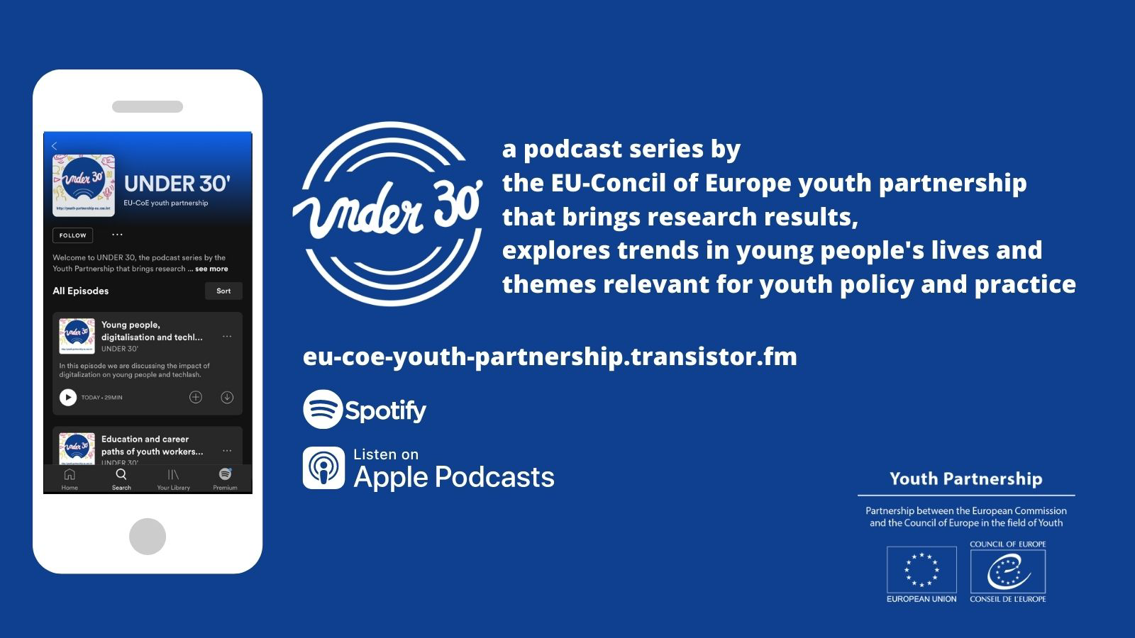 În cadrul Parteneriatului dintre Comisia Europeană și Consiliul Europei în domeniul tineretului a fost lansată seria de podcasturi UNDER 30, care prezintă rezultate ale cercetării în domeniul tineretului, explorează tendințele privind viața tinerilor și temele relevante privind politici și practici în domeniul tineretului.