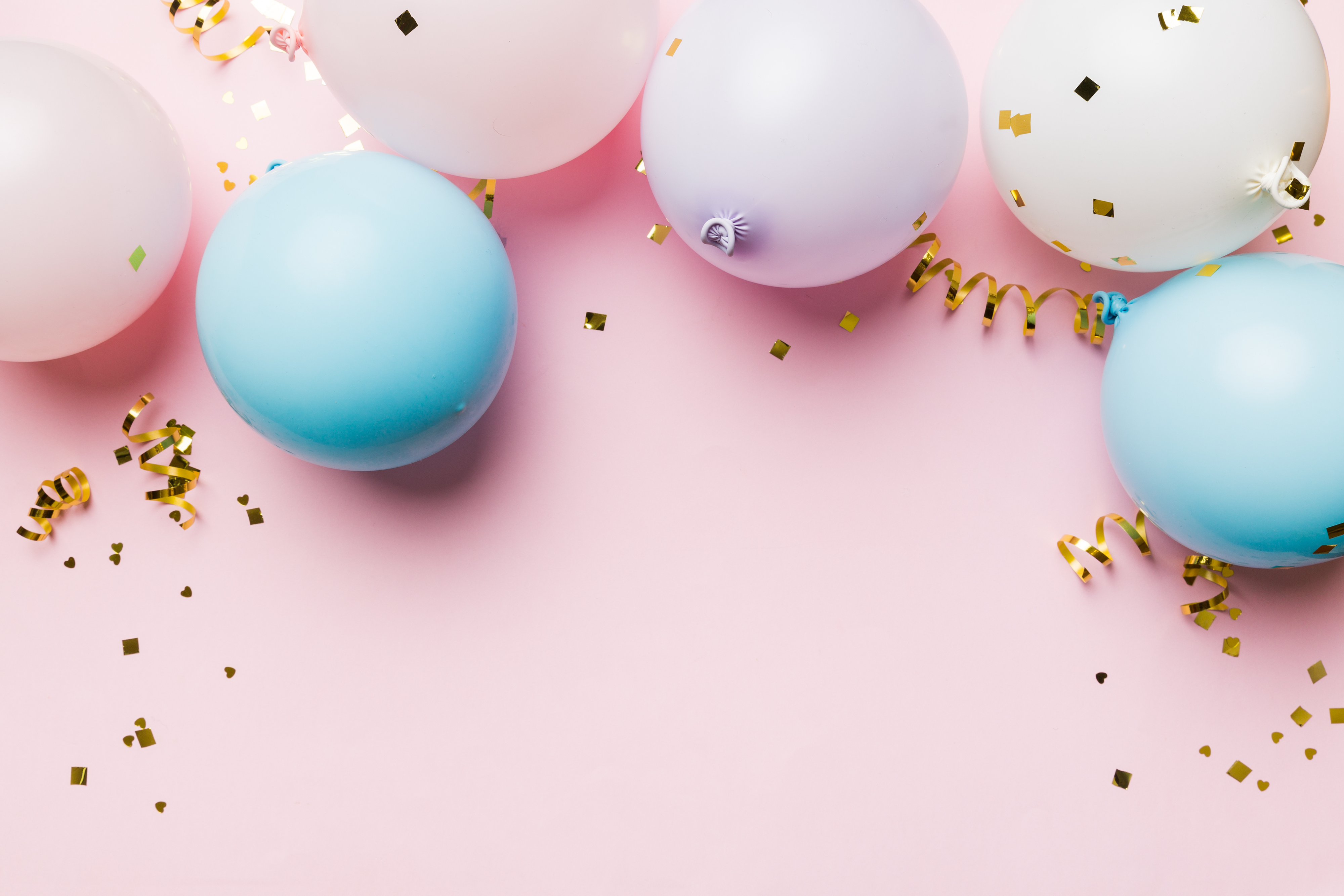 Created with images by • sosiukin - Background with fastive air balloons of round shape and confetti, multicoloured top view. Birthday party background