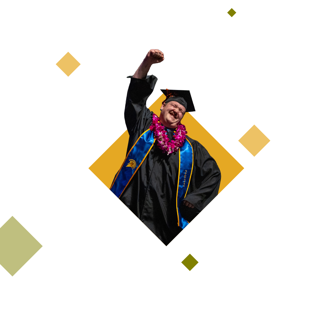 Tassels vary in use and color. At SJSU, the color of tassels for bachelor’s degree candidates represent each college. The color for the College of Health and Human Sciences is olive green.