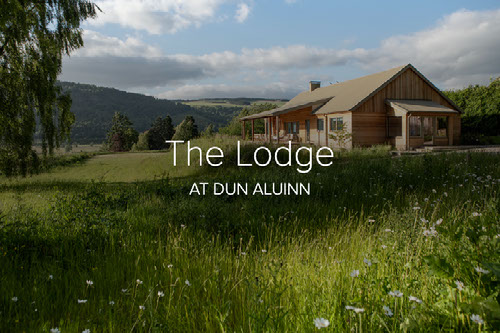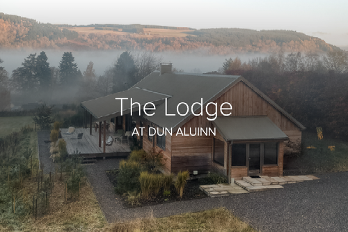 Alongside the main house, guests have the option to book The Lodge at Dun Aluinn, a contemporary retreat designed with the same elegance and attention to detail. Nestled within the estate grounds, The Lodge combines sleek, design-led interiors with warm, natural materials, offering panoramic views across the River Tay and the rolling Perthshire hills. It’s a place where modern comfort meets Highland wilderness — intimate, stylish, and deeply connected to the surrounding landscape.