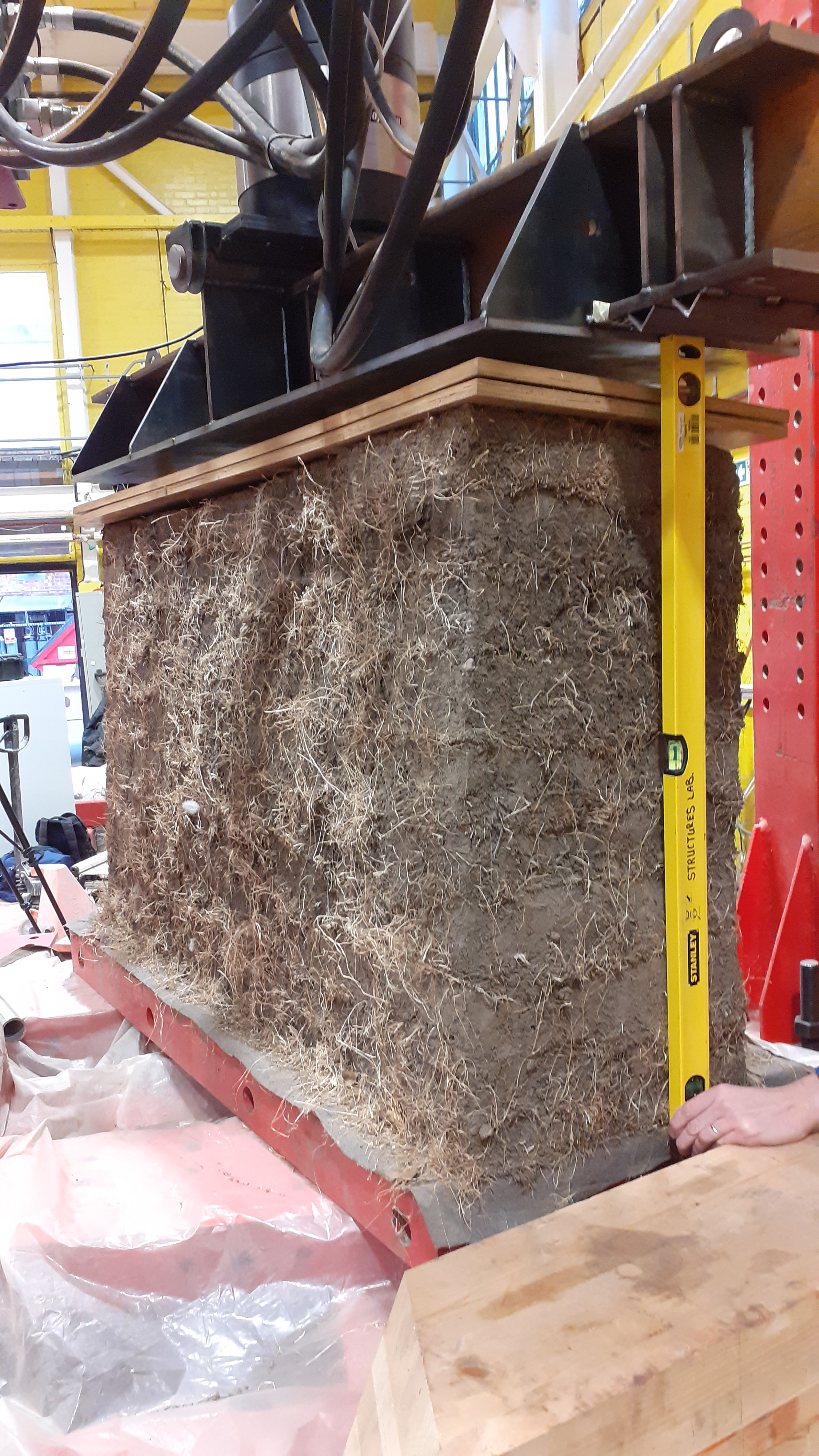 After their months outside, each wall was then lifted inside and compressed until they failed. This revealed new results: even under extreme loads the walls compressed, bulged and buckled; but they did not collapsed or crumble. The roots held them together.