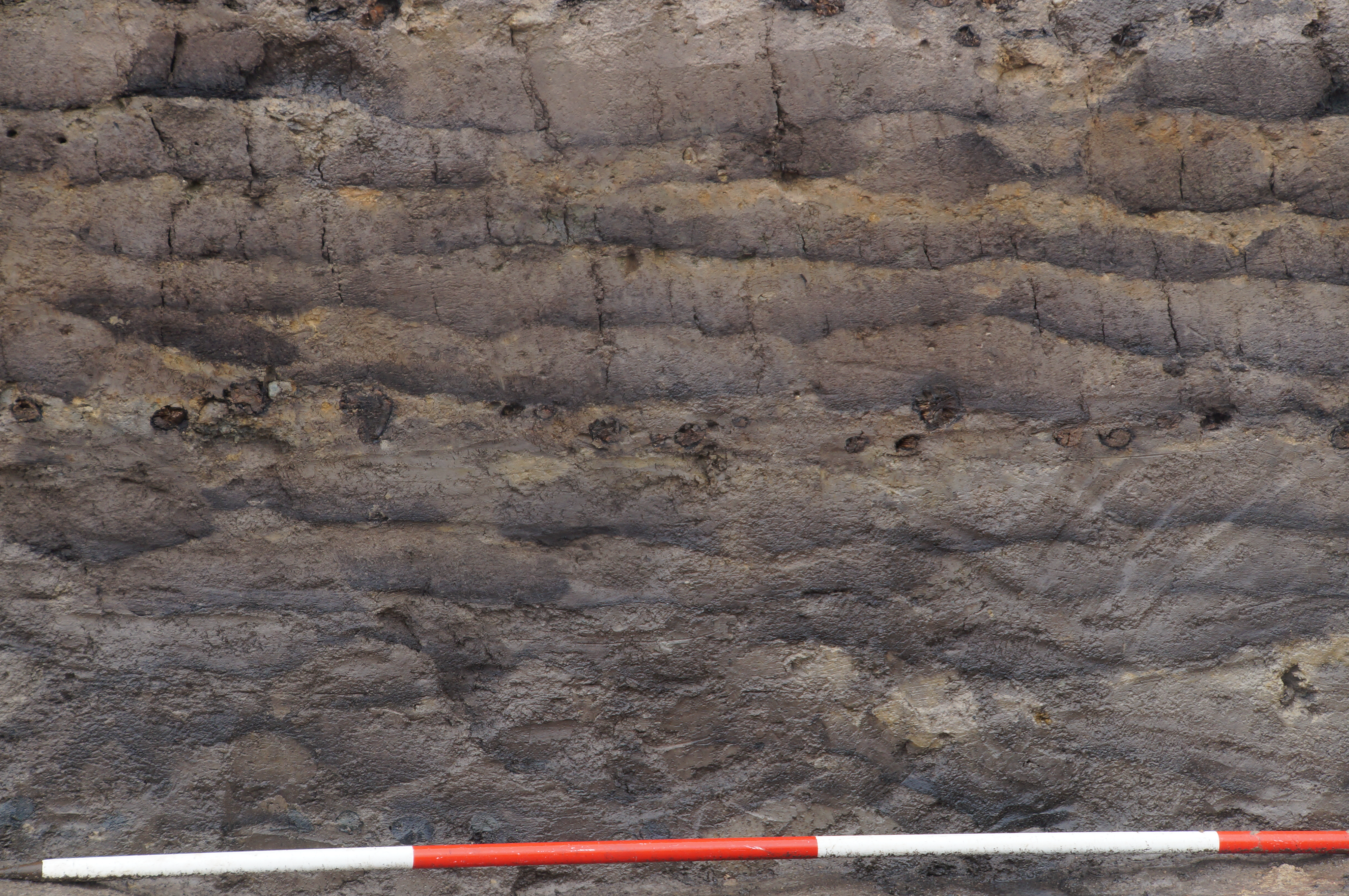 The ramparts were each built in slightly different ways. Mostly, timber rafts made of alder, silver birch and oak logs that were split lengthways and arranged at right angles to mark the line of the rampart. In some stretches of the structure, branches were used to lay perpendicular to the turf at the edge of the raft, creating a marked edge. The men from the cohors VIIII Batavorum who built the Period III rampart at the beginning of the second century AD, however, did not feel the need to use a raft, constructing the turf up directly from the ground.