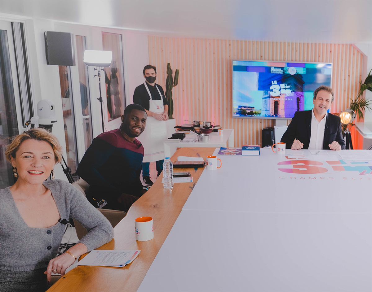TOUT COMPRIS (LOUEZ NOTRE PLATEAU TV TOUT ÉQUIPÉ À LA JOURNÉE 15K€ HT) : dans un décor spécialement agencé pour votre événement, notre équipe d’experts se mobilise pour accompagner et encadrer l’ensemble des étapes de production de vos contenus de marque et d’entreprise. Profitez de l’écosystème 34LIVE Champs-Elysées pendant une journée de co-création et de networking dans laquelle les efforts et les coûts sont astucieusement mutualisés