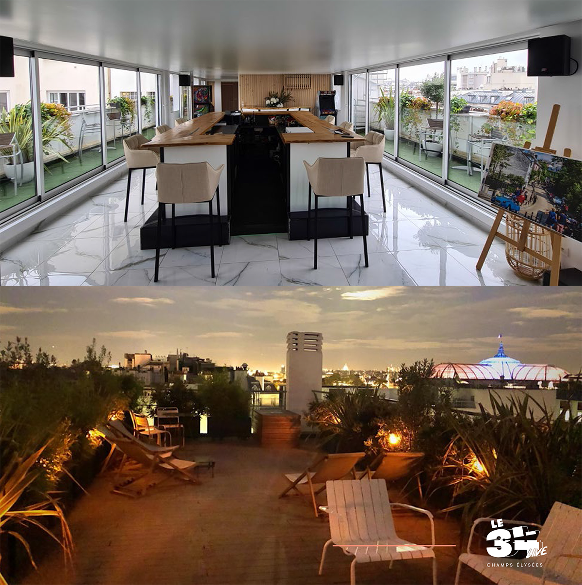 UNE TERRASSE DE 140 M² : muni d’un écran LED Outdoor de 3,75 m²