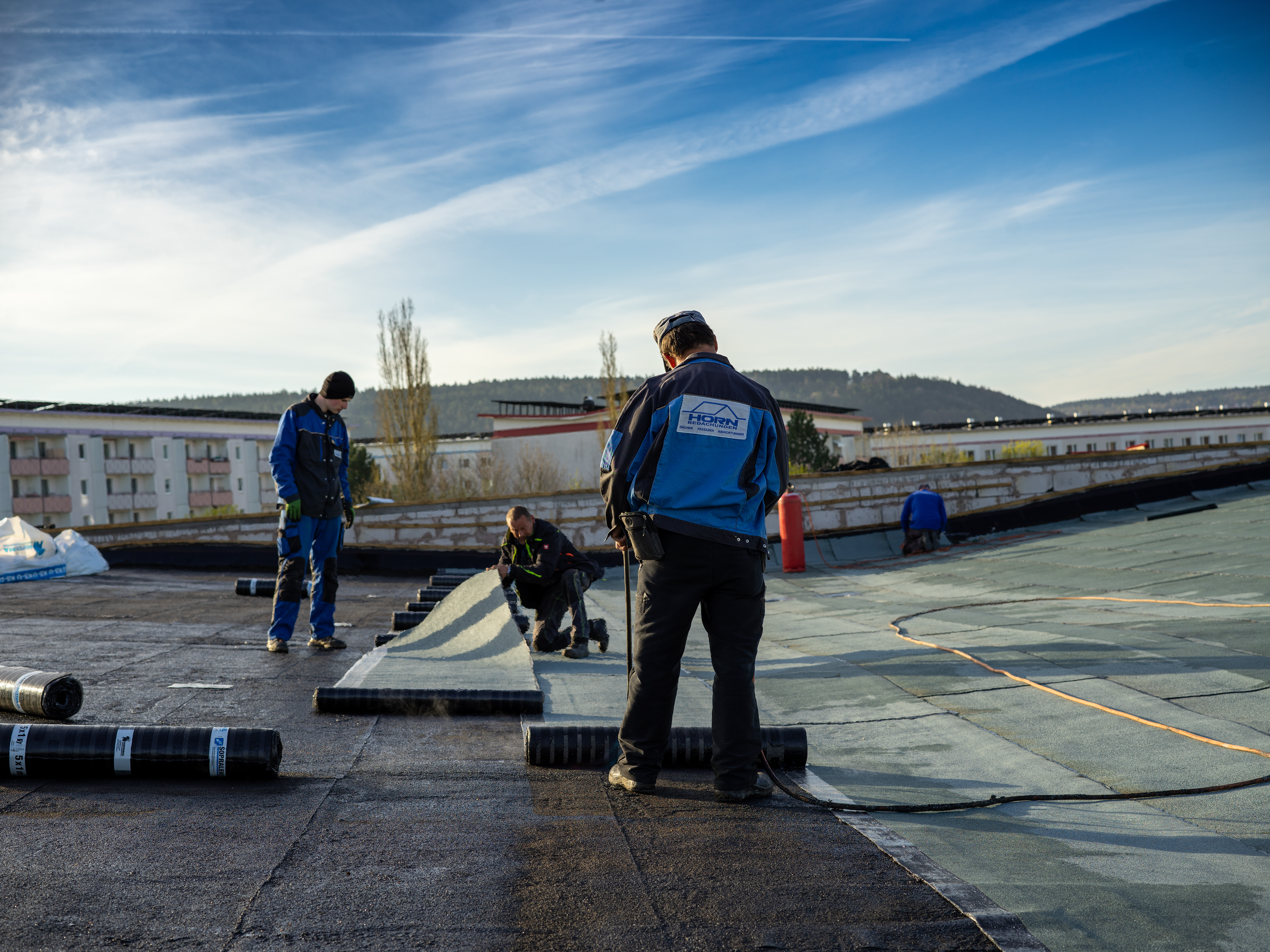 Heute arbeiten bei Horn Bedachungen 33 engagierte Mitarbeiter, die mit ihren breitgefächerten Qualifikationen und Erfahrungen ein kompetentes Team bilden. Regelmäßige Schulungen und Weiterbildungen stellen sicher, dass Wissen und Fertigkeiten stets auf dem neuesten Stand sind. Mit der Ausbildung junger Menschen zum Dachdecker investiert das Unternehmen zusätzlich in den eigenen Fachkräftenachwuchs und stellt sich sicher für die Zukunft und die wachsenden Ansprüche seiner Kunden auf.