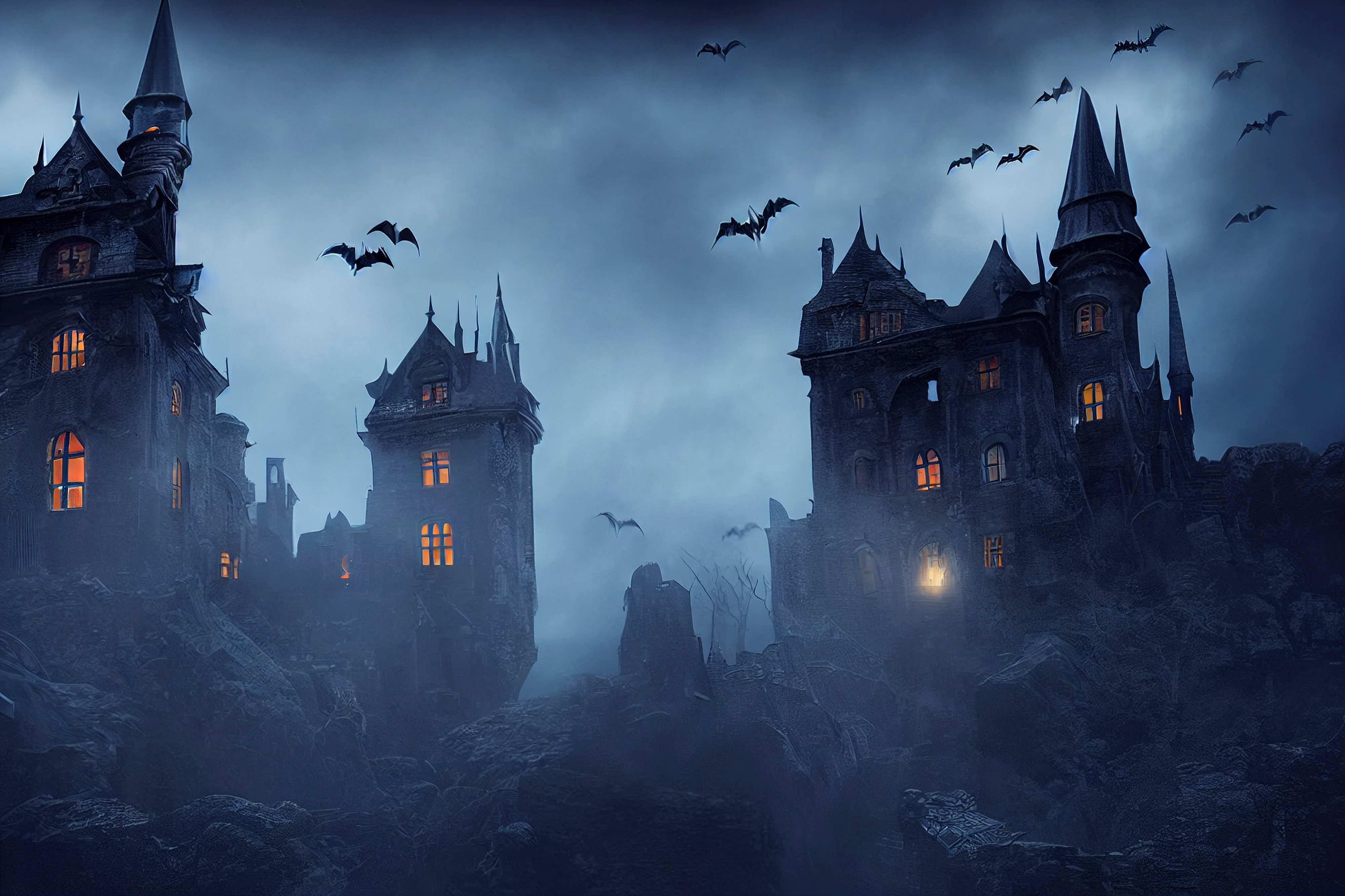 Created with an image by Mikiehl Design - "Spooky old gothic castle, foggy night, haunted mansion"