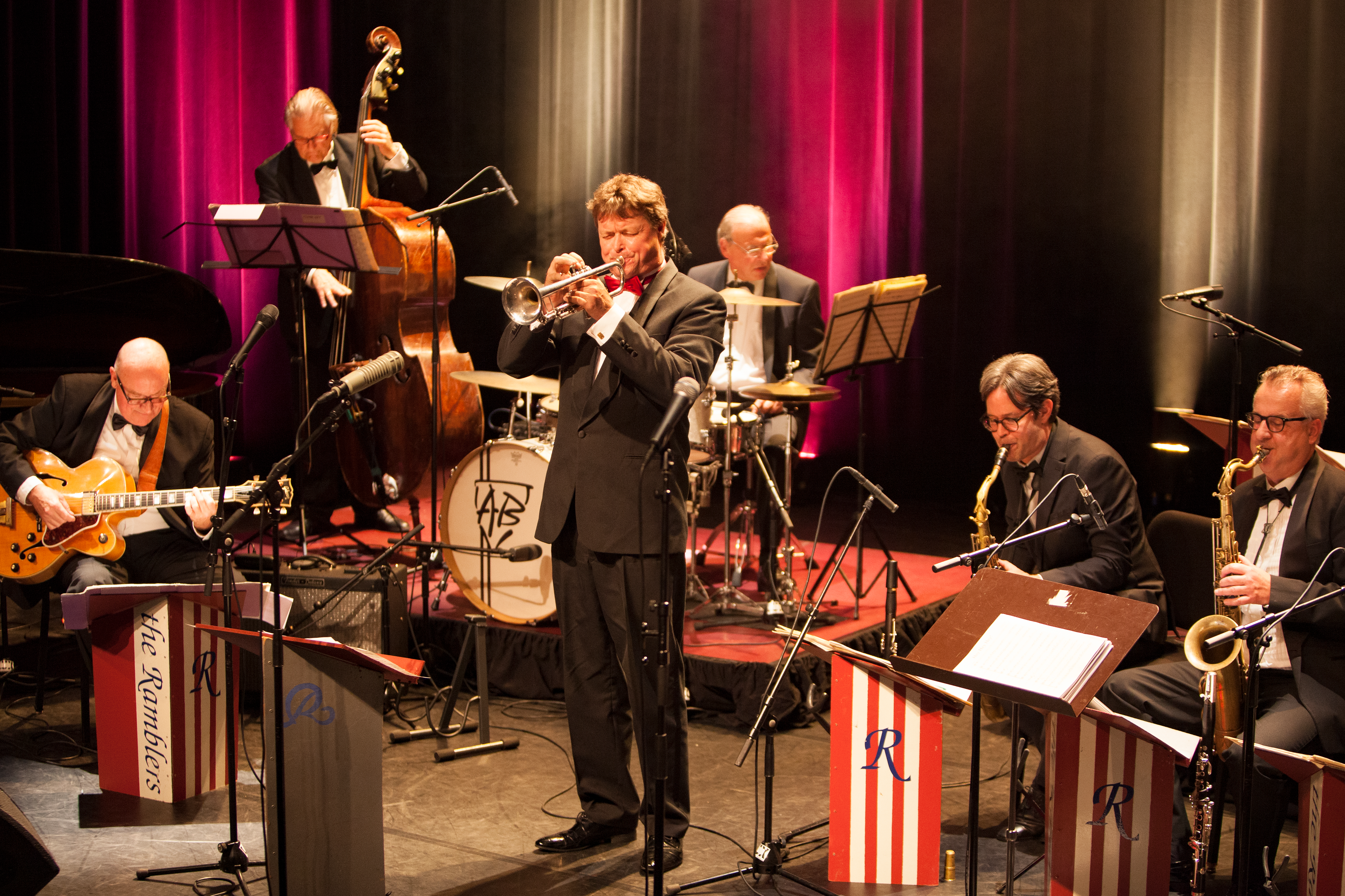 Orkestleider Loet van der Lee gaat geen enkele muzikale uitdaging uit de weg en soleert zelf regelmatig in de stijl van Harry James. Met Sherry Dyanne brengen we enkele eigen stukken van haar maar Sherry gaat natuurlijk ook liedjes zingen uit ons eigen dikke Ramblersboek”.