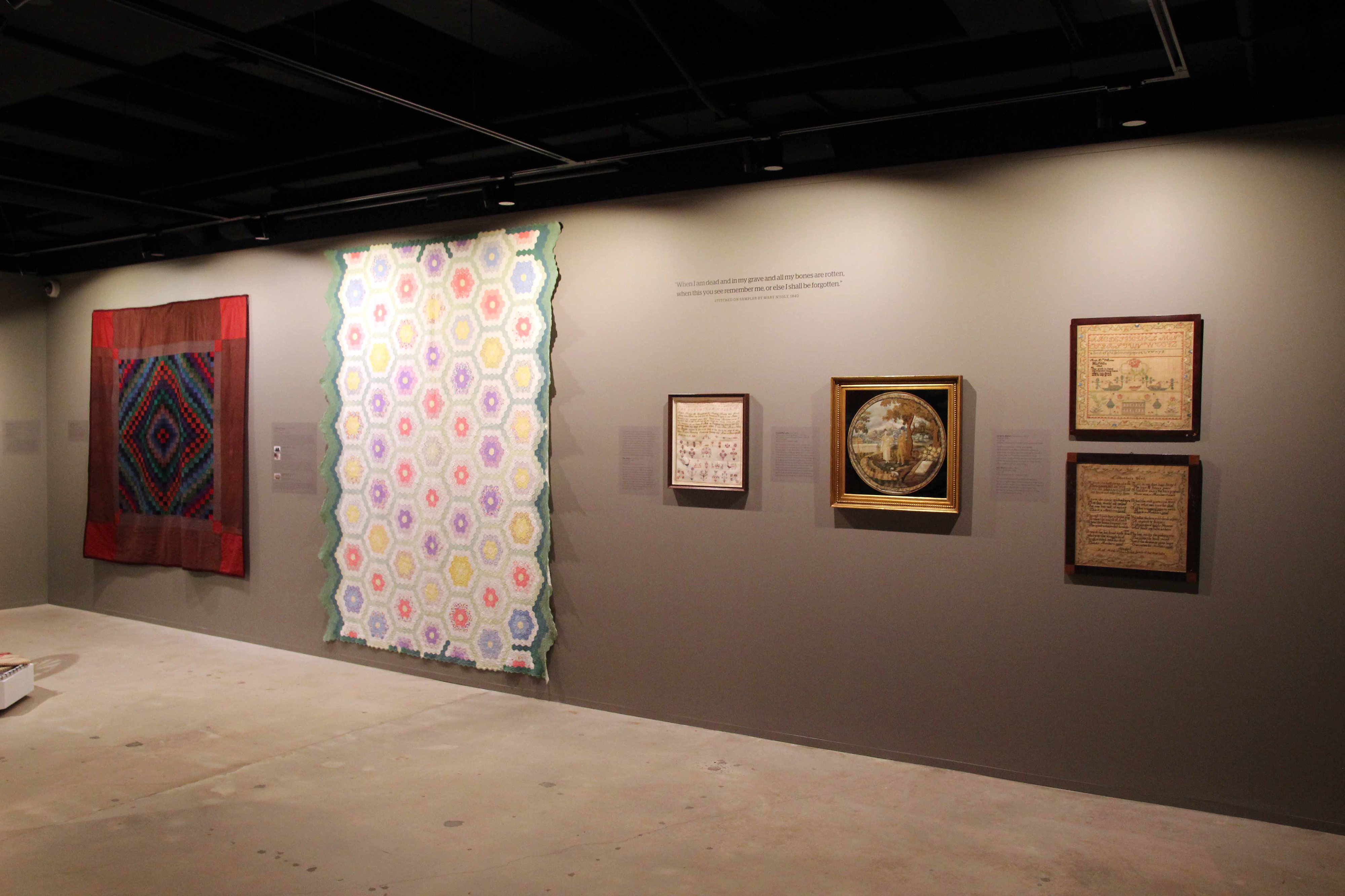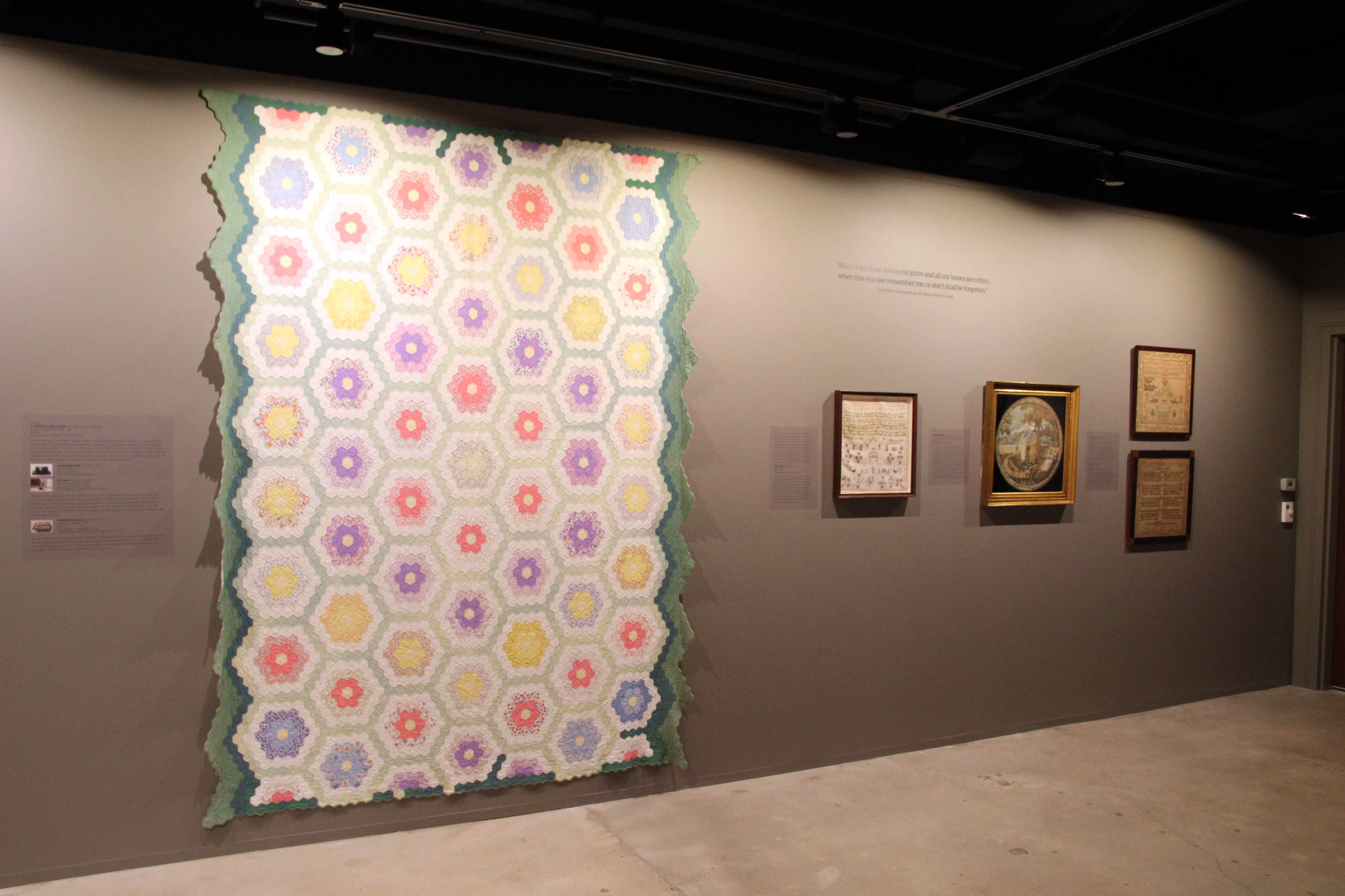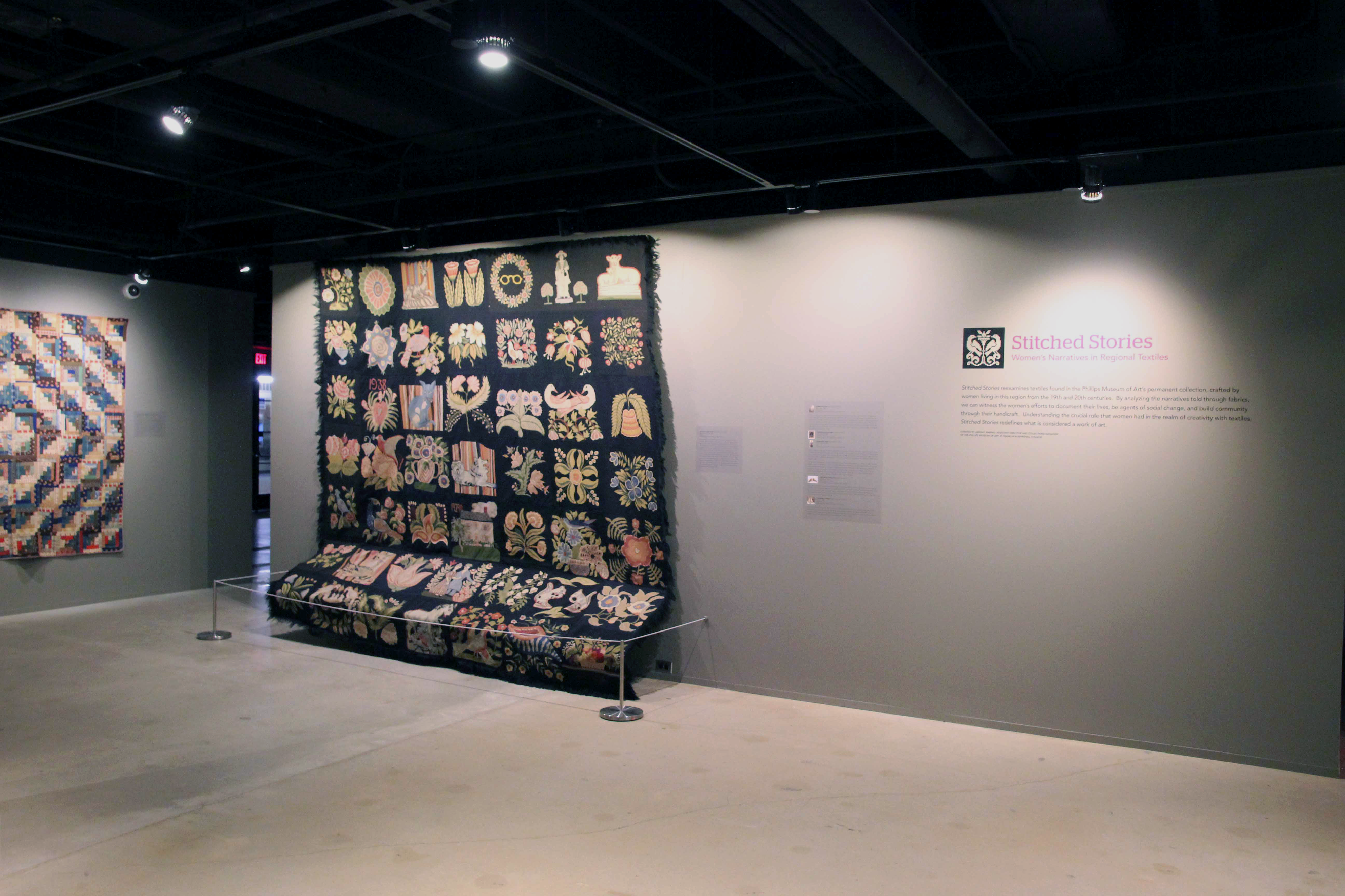 Stitched Stories reexamines textiles found in the Phillips Museum of Art's permanent collection, crafted by women living in this region from the 19th and 20th centuries. By analyzing the narratives told through fabrics, we can witness the women's efforts to document their lives, be an agent of social change, and build community through their handicraft. Understanding the crucial role that women had in the realm of creativity with textiles, Stitched Stories redefines what is considered a work of art.