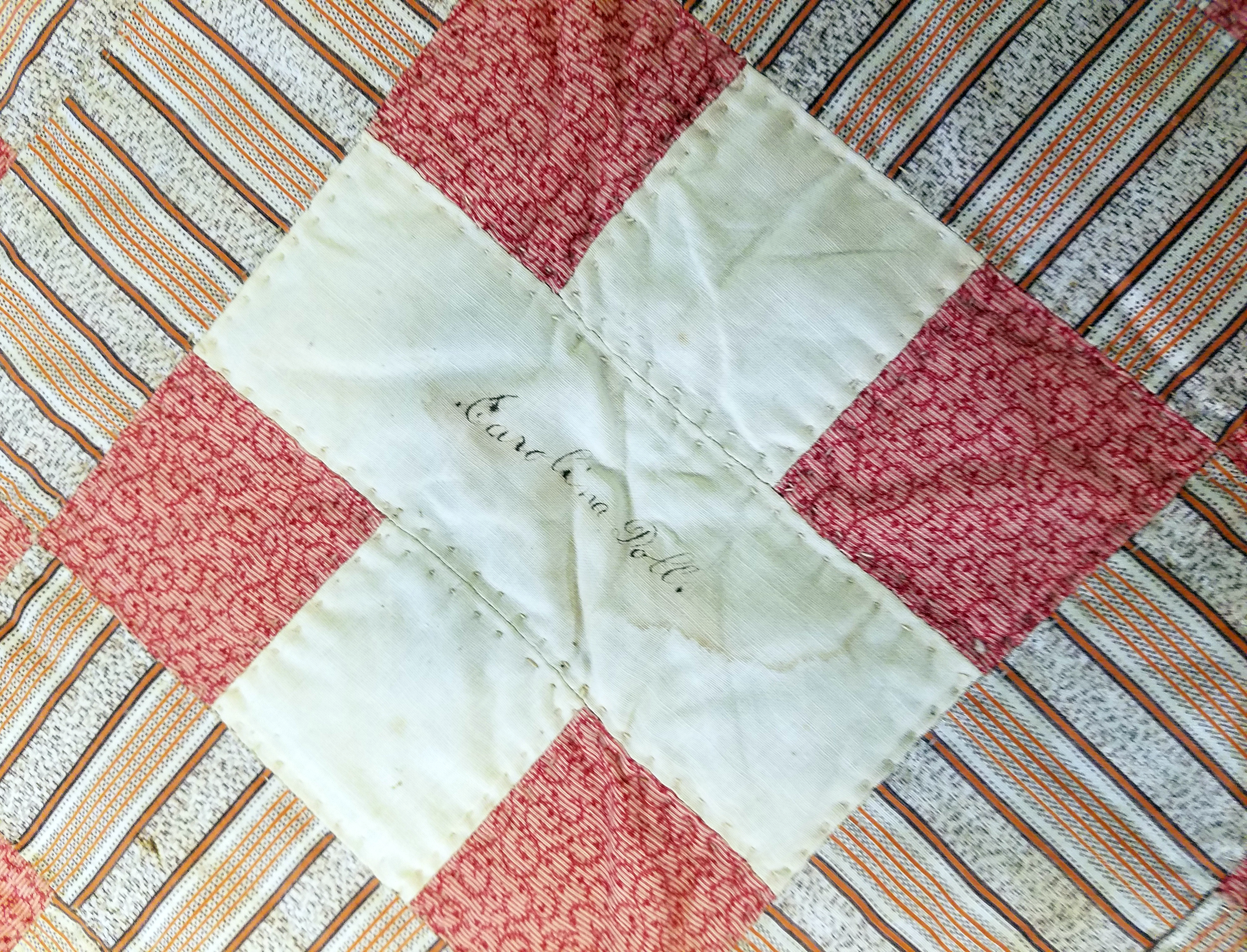 Quilts are used as a way of remembering, whether it was by using scraps of clothing from a loved one, piecing together patterns passed through family lines, or cementing friendships. This Friendship Chain quilt helped to solidify community bonds. Friendship quilts and signature quilts bear the names of friends and family, seen written in the squares. These quilts were usually made by women for other women to commemorate special events or to serve as a memento when long separations were imminent, as a way of remembering the community.