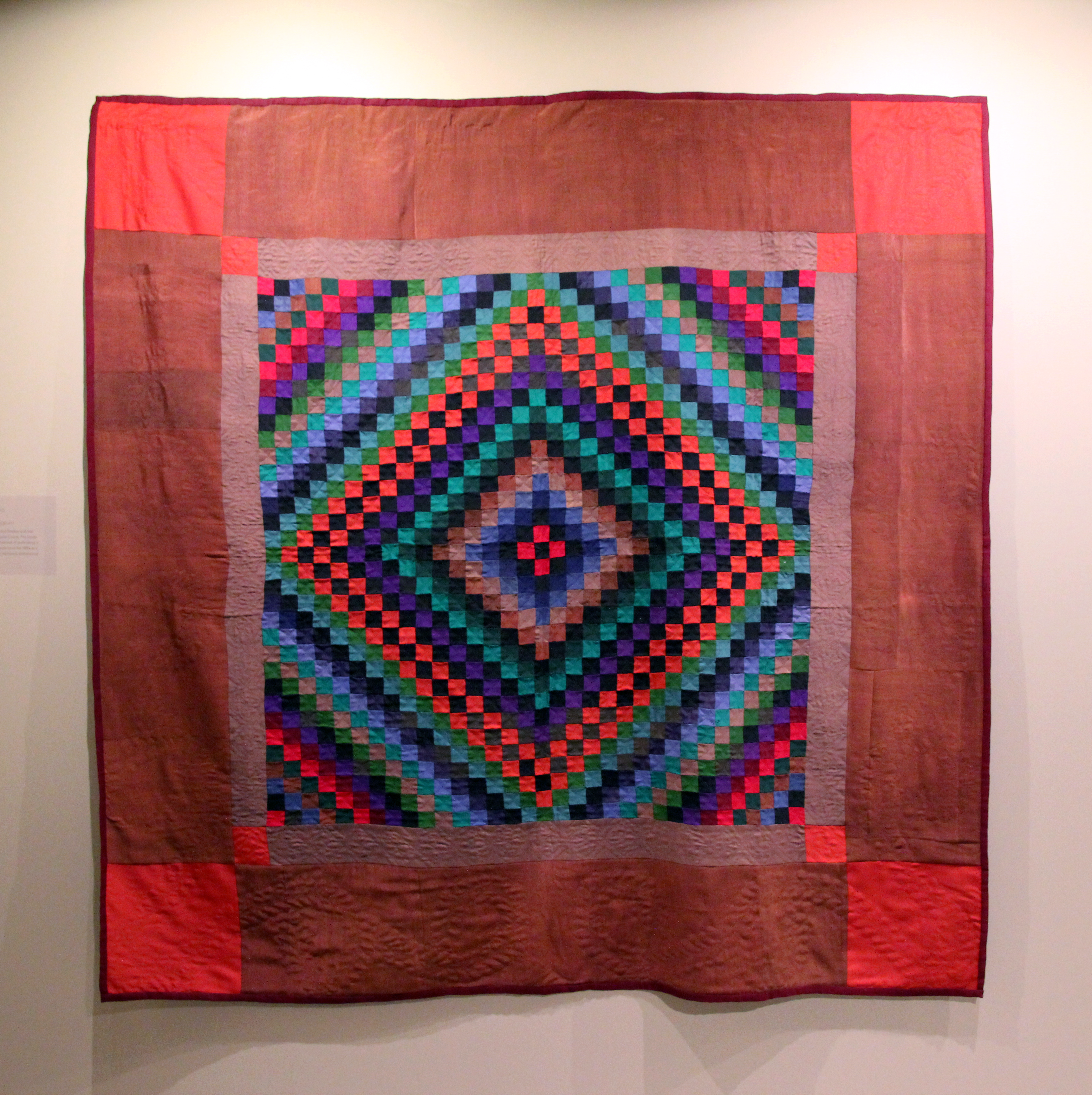 Unidentified maker (Lancaster County, 20th C). Sunshine and Shadow Quilt, c. 1940. Wool and rayon, 78 x 79 1/2". Gift of Mr. and Mrs. Christian H. Shenk, #2015.00.1711.