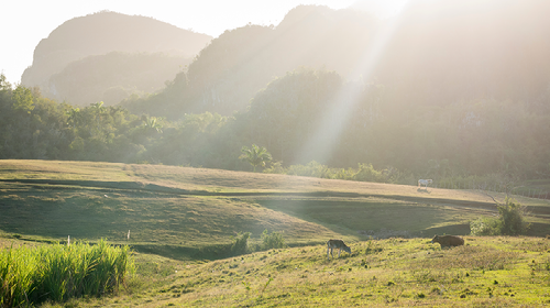 4:30 pm ~ Optional: Afternoon walk or horse back ride through the Cuban countryside with City Historian. Meet with the City Historian of Viñales Ricardo Alvarez who will stroll with us through the small farms, town center, geological wonders, and world’s finest tobacco-growing region.