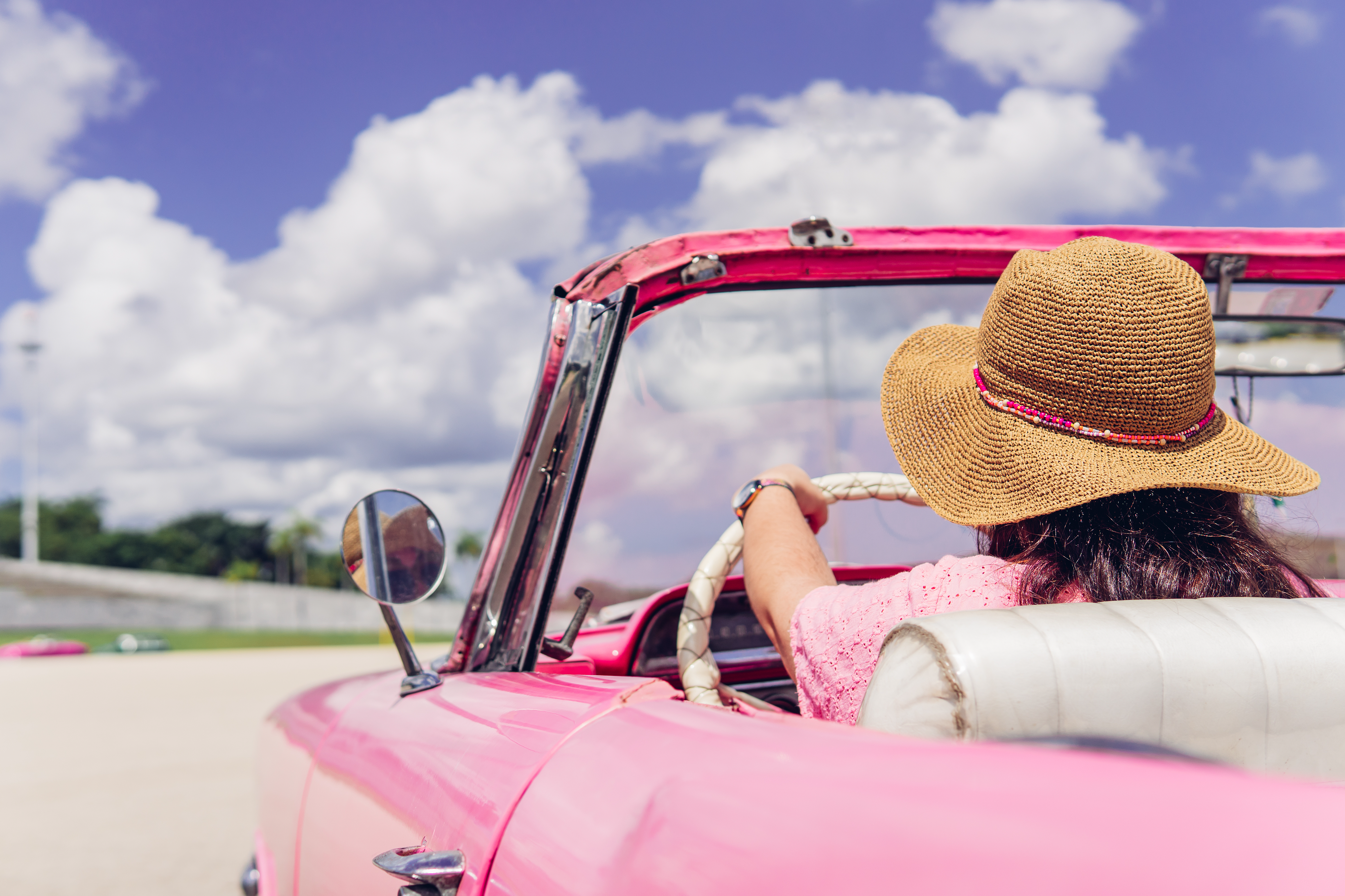Created with images by • undefined - undefined • undefined - Anonymous female traveler in straw hat driving pink retro cabriolet on cloudy day during summer vacation in Cuba. Unrecognizable woman driving retro cabriolet on city road • undefined - Beautiful sunset, sky on the top view, airplane flying view from inside window aircraft of Traveling.