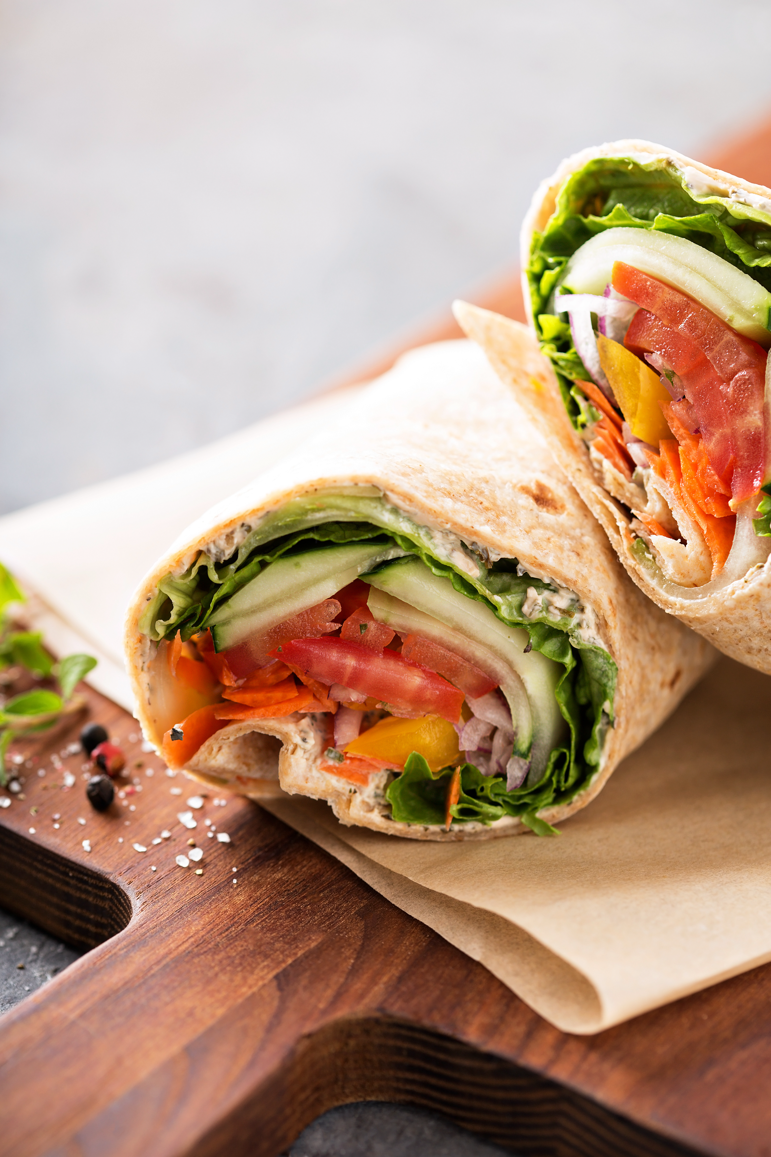 All recipes can be made gluten free using gluten free wraps or dairy free by switching to vegan cheese and mayonnaise options.