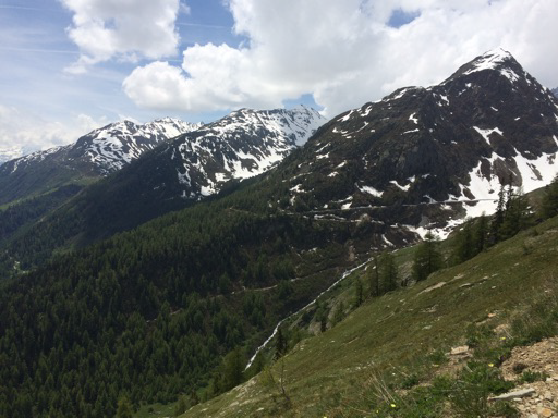Von Goppenstein ging es zuerst rund 500 Meter ein geteertes Strässchen entlang. Ach wie angenehm dachte ich, so lässt es sich gut warmlaufen. Leider nichts gewesen, denn nach diesen 500 Meter folgte der Hammer. Ein unglaublich steiler Aufstieg erwartete mich: Hinauf zur ersten Station, der Faldumalp lagen über 800 Höhenmeter auf nur gerade 3 km vor mir. Das war wirklich kräfteraubend und schon bald sah man mich nur noch schnell wandernd die Höhen erklimmen. Das war mir definitiv zu steil, um mit meinen gut 6 kg Gepäck im Tagesrucksack noch (locker) hinaufrennen zu können.