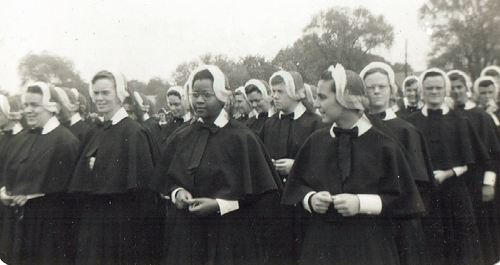 Only 17 when she entered the Sisters of Mercy in Philadelphia on August 22, 1956, Sister Cora Marie remembers “feeling overwhelmed” by a sea of white nuns. But she was proud too. The great-granddaughter of a man enslaved by Jesuit priests at Georgetown University, Sister Cora Marie knew she was making history. Two aunts had been denied entry into the Sisters of Mercy a generation earlier because of their race.