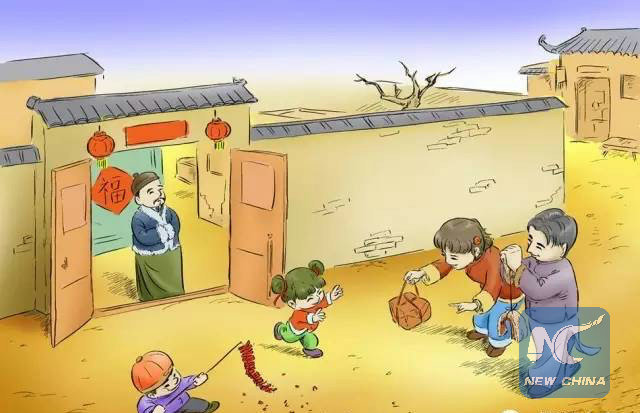 Την πρώτη ημέρα του Νέου Έτους, οι νεώτεροι επισκέπτονται τους γηραιότερους για να τους ευχηθούν. Οι ηλικιωμένοι δίνουν στους νεαρούς επισκέπτες χρήματα μέσα σε κόκκινο φάκελο. Το κόκκινο είναι για τους Κινέζους το χρώμα της χαράς αλλά και το χρώμα που διώχνει το κακό.