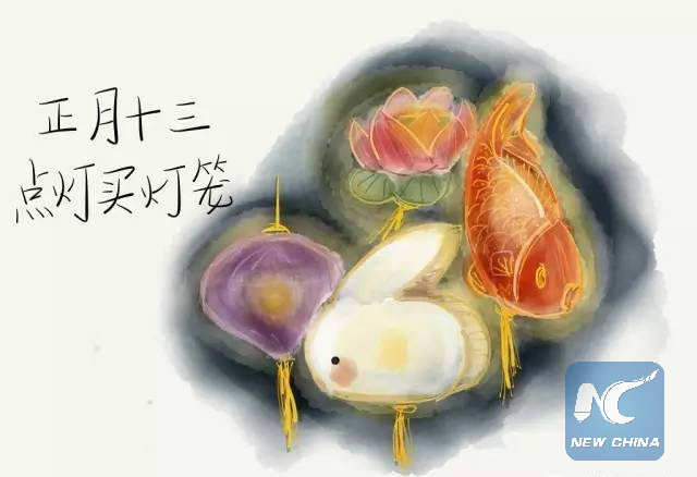 Την δεκάτη τρίτη ημέρα πηγαίνουν στην αγορά και ψωνίζουν φαναράκια για το Φεστιβάλ των Φαναριών. Την ημέρα αυτή τιμούν και τον θεό του Πολέμου (τον θρυλικό Στρατηγό Guan Yu). Θεωρείται ο προστάτης των επιχειρηματιών αφού όσο ζούσε είχε καταφέρει πάνω από εκατό νίκες σε μάχες.