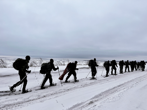 Led by Sgt. 1st Class David Merkley, 1st Training Battalion, 164th Regiment Regional Training Institute, they confronted the challenges of winter weather with determination over the weekend. This winter training prepared Soldiers for combat operations in Arctic conditions; it included classroom instruction and outdoor exercises. The highlight was a ruck march at Camp Grafton, followed by a warm hot chocolate bar to counteract the chill.