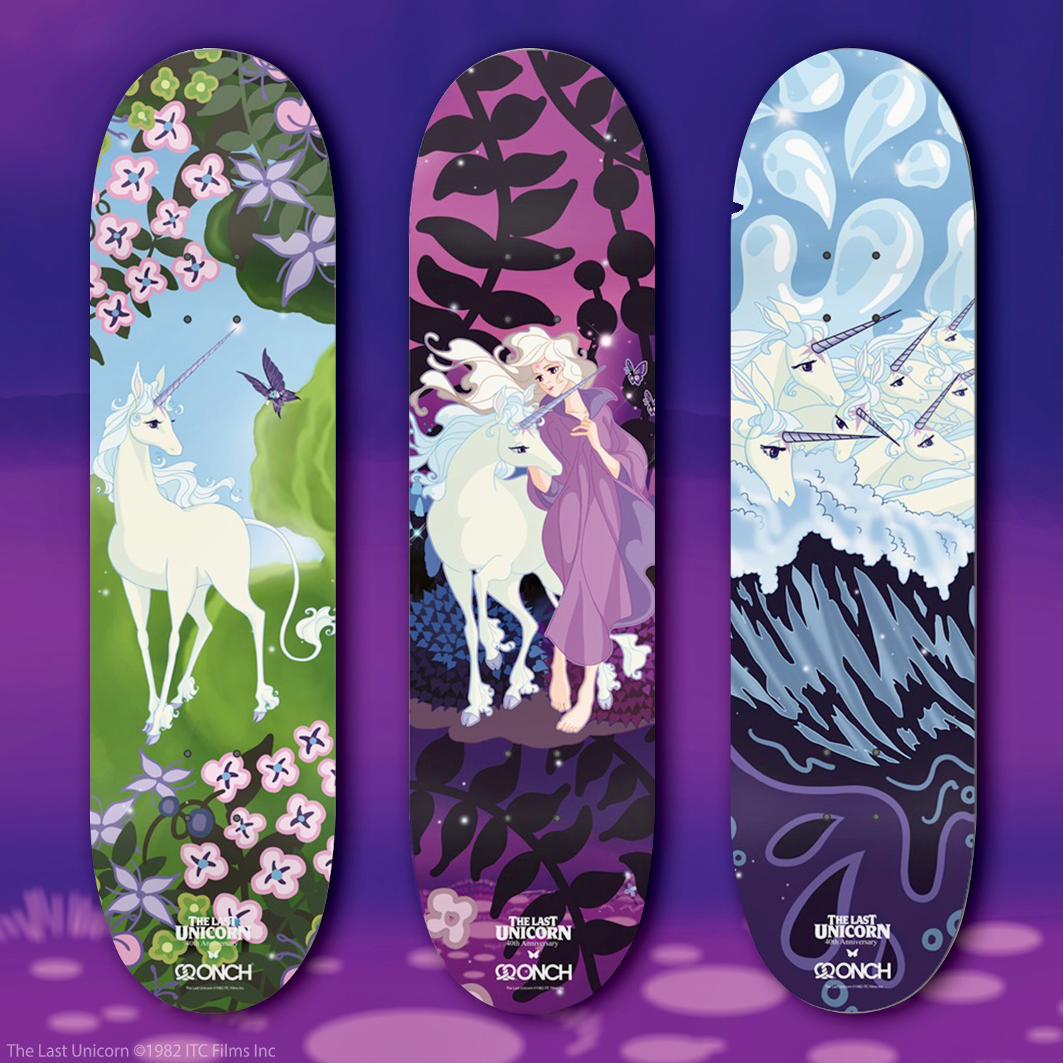 Summer 2022 - To mark the 40th anniversary of the beloved fantasy film The Last Unicorn, ONCH designed an exclusive capsule collection. The officially licensed collection includes jewelry, enamel pins, and skateboard decks, serving as a global tribute crafted by fans for fans—celebrating four decades of enduring magic.