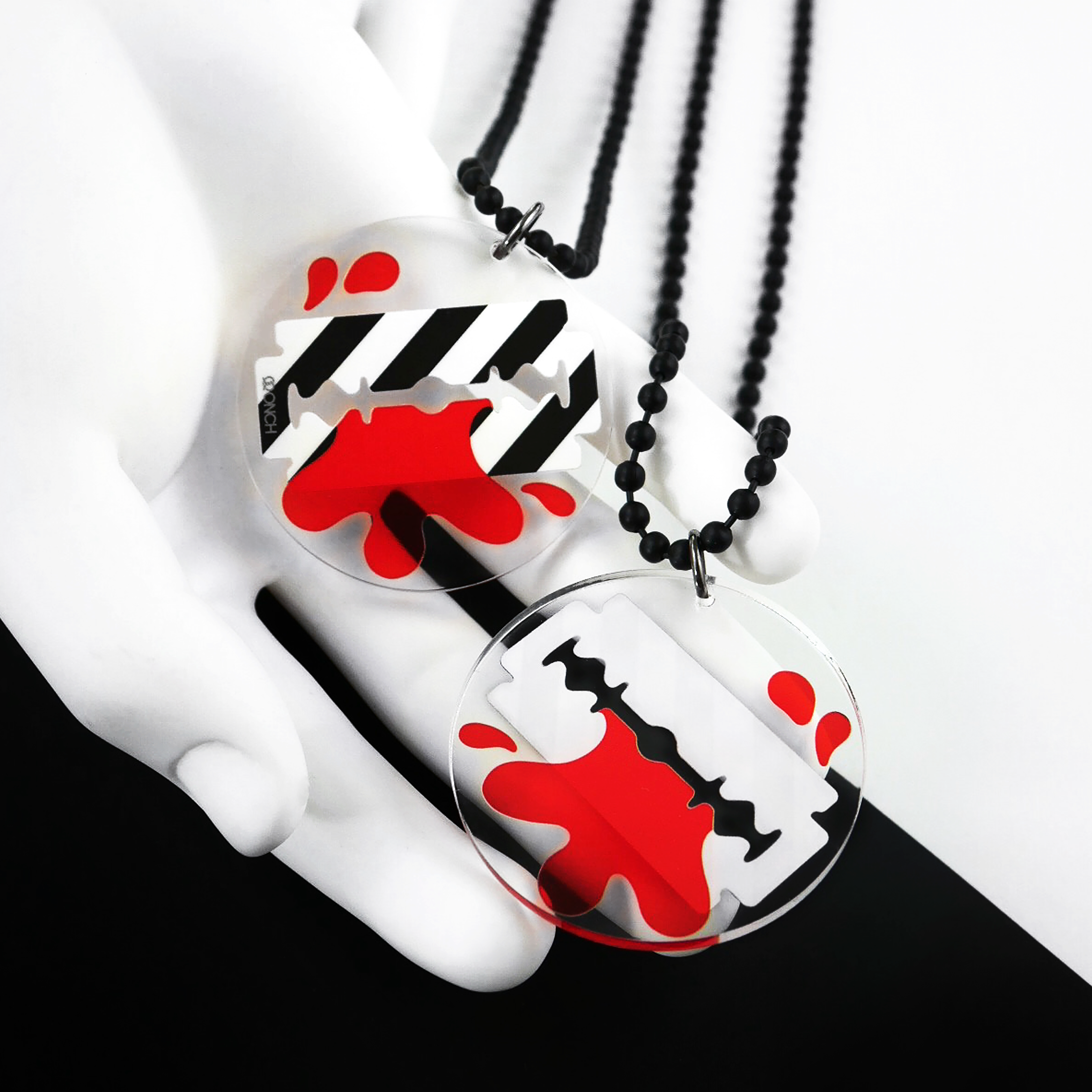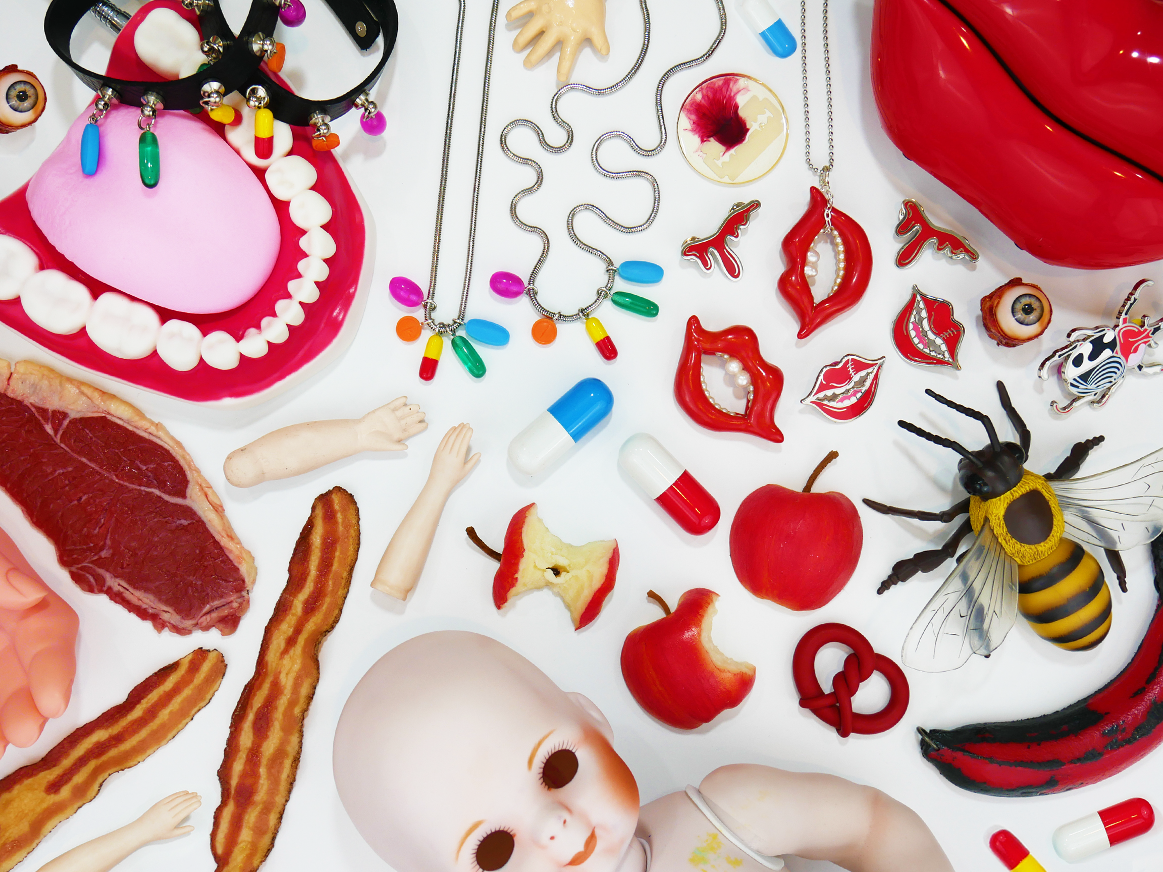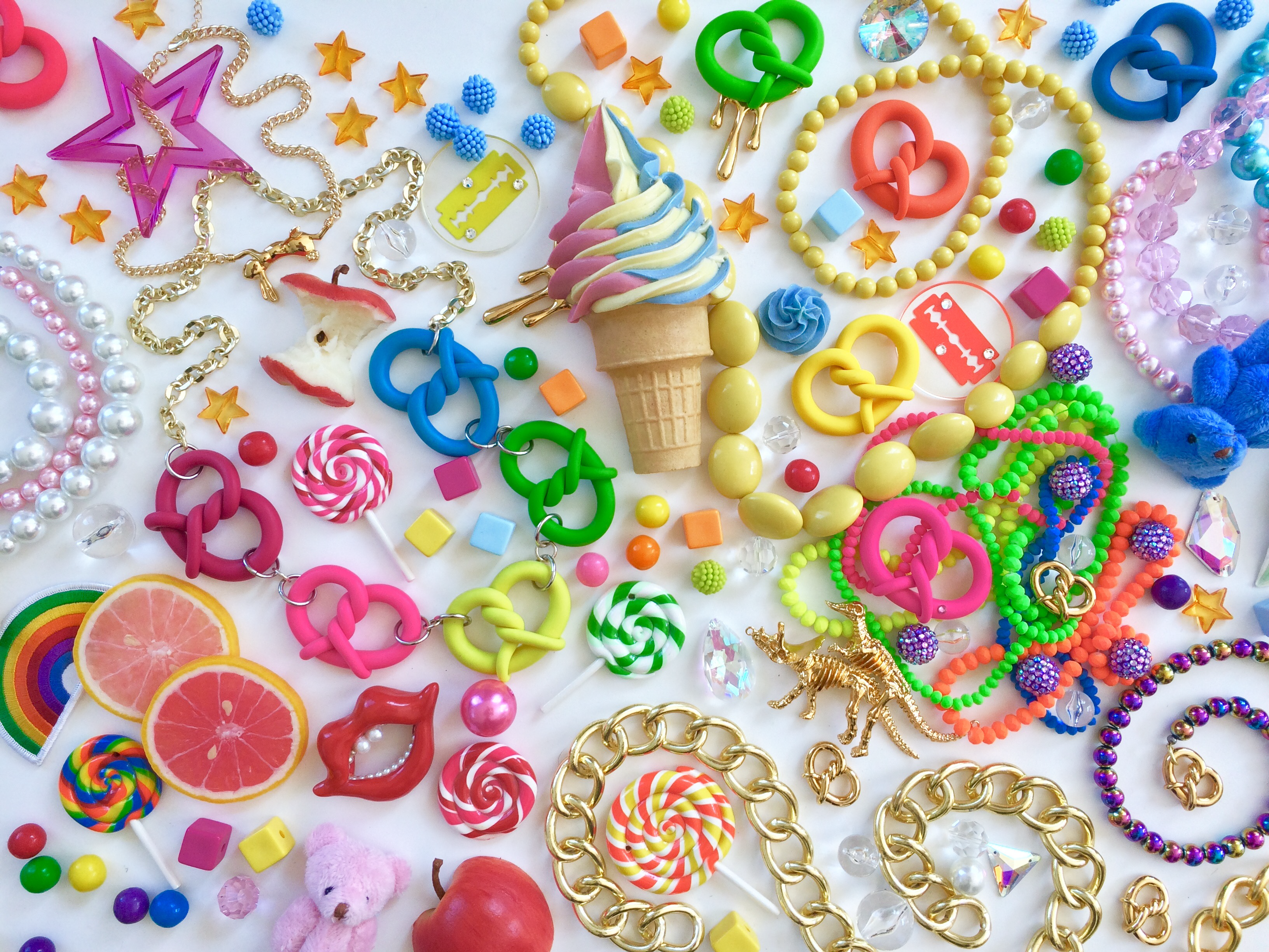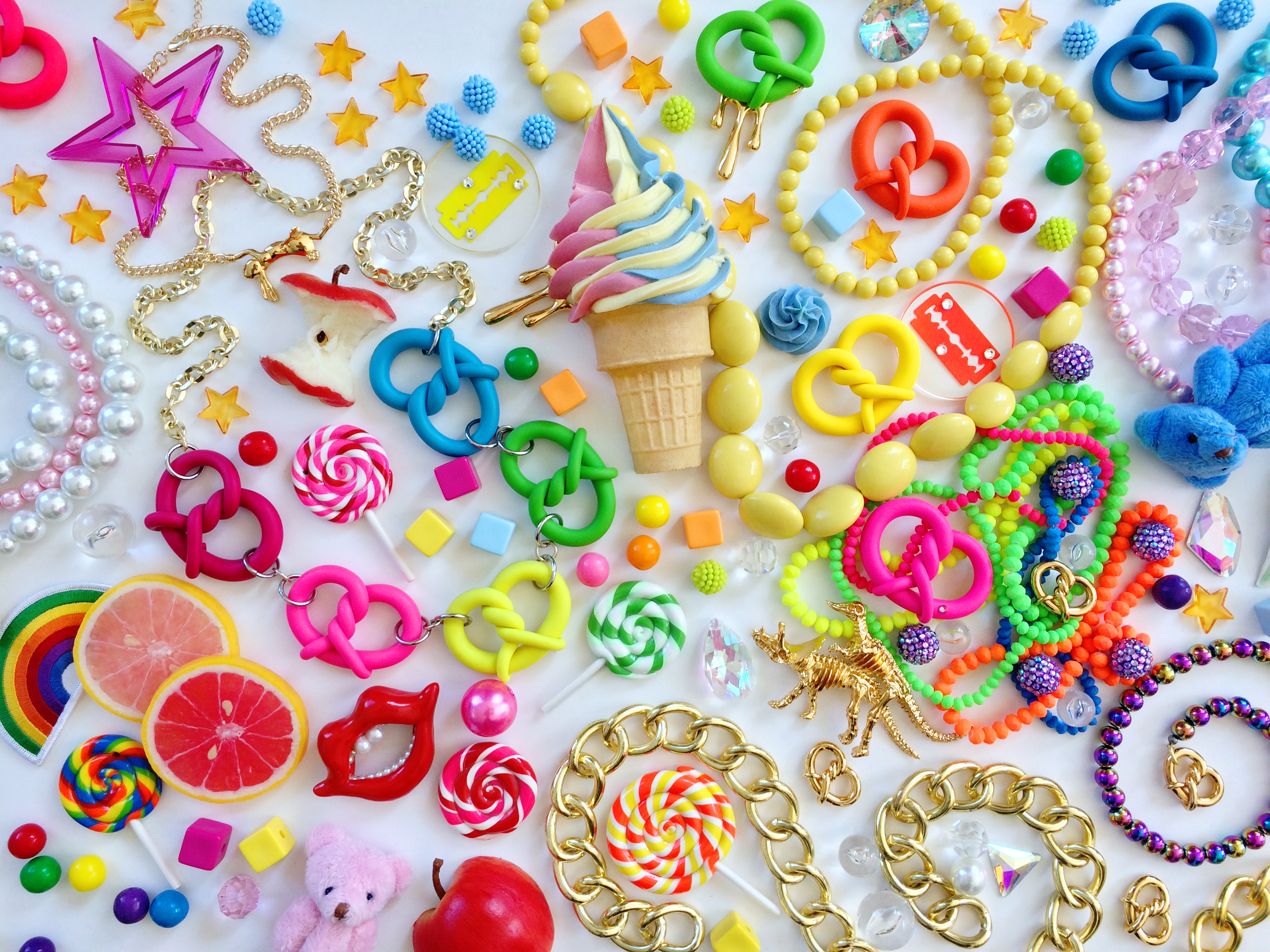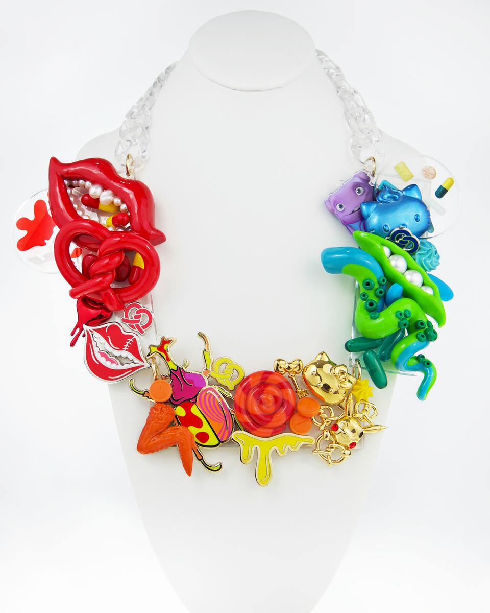 A favorite among cultural icons, ONCH’s designs have adorned Rihanna, Kate Moss, Kim Kardashian, Paris Hilton, and Amy Winehouse. Nicki Minaj famously wore his Rainbow Ice Cream Cone Necklace to accept her first MTV VMA—and made headlines again with ONCH’s Pink Fried Chicken Wing Necklace, a moment as unforgettable as Gaga’s Meat Dress.