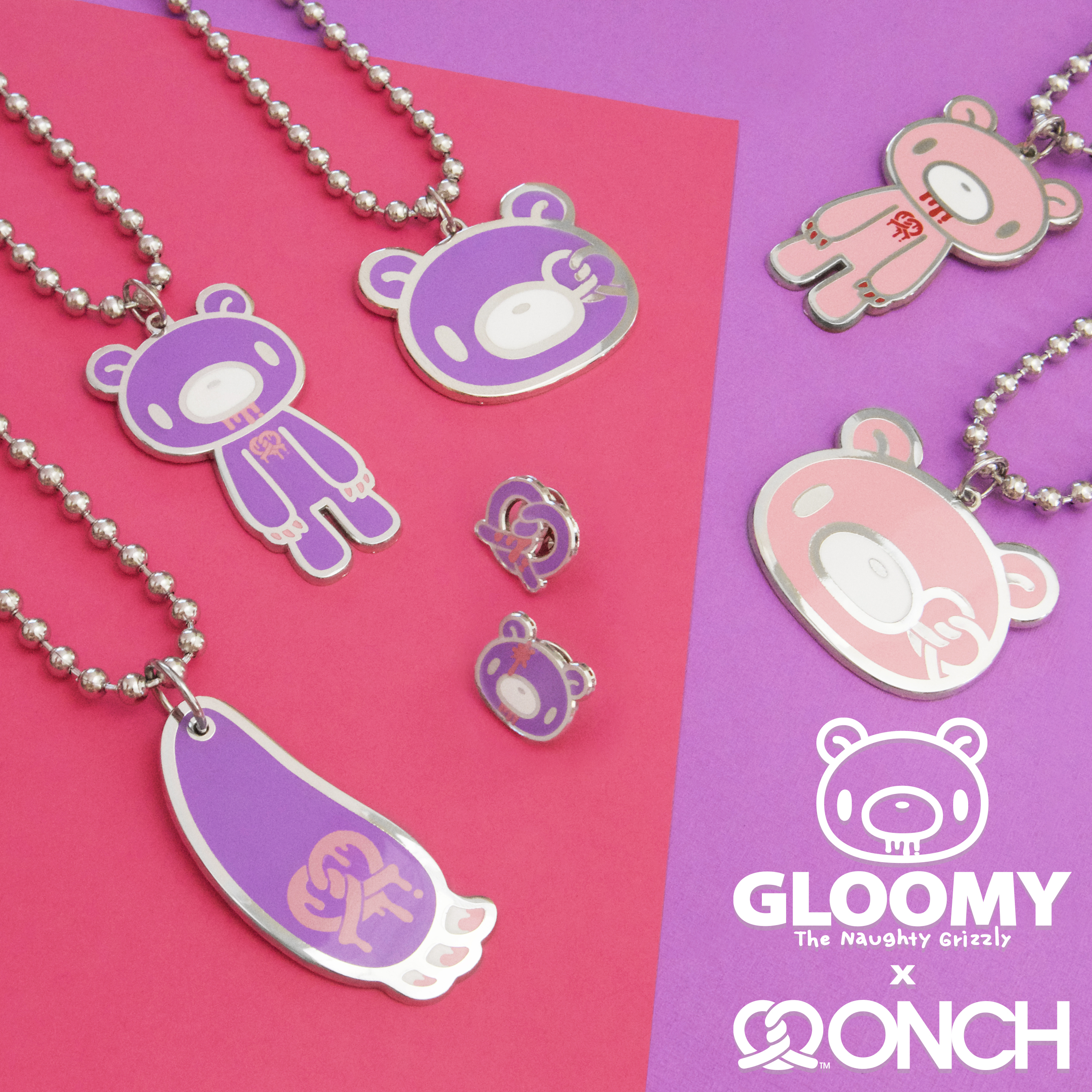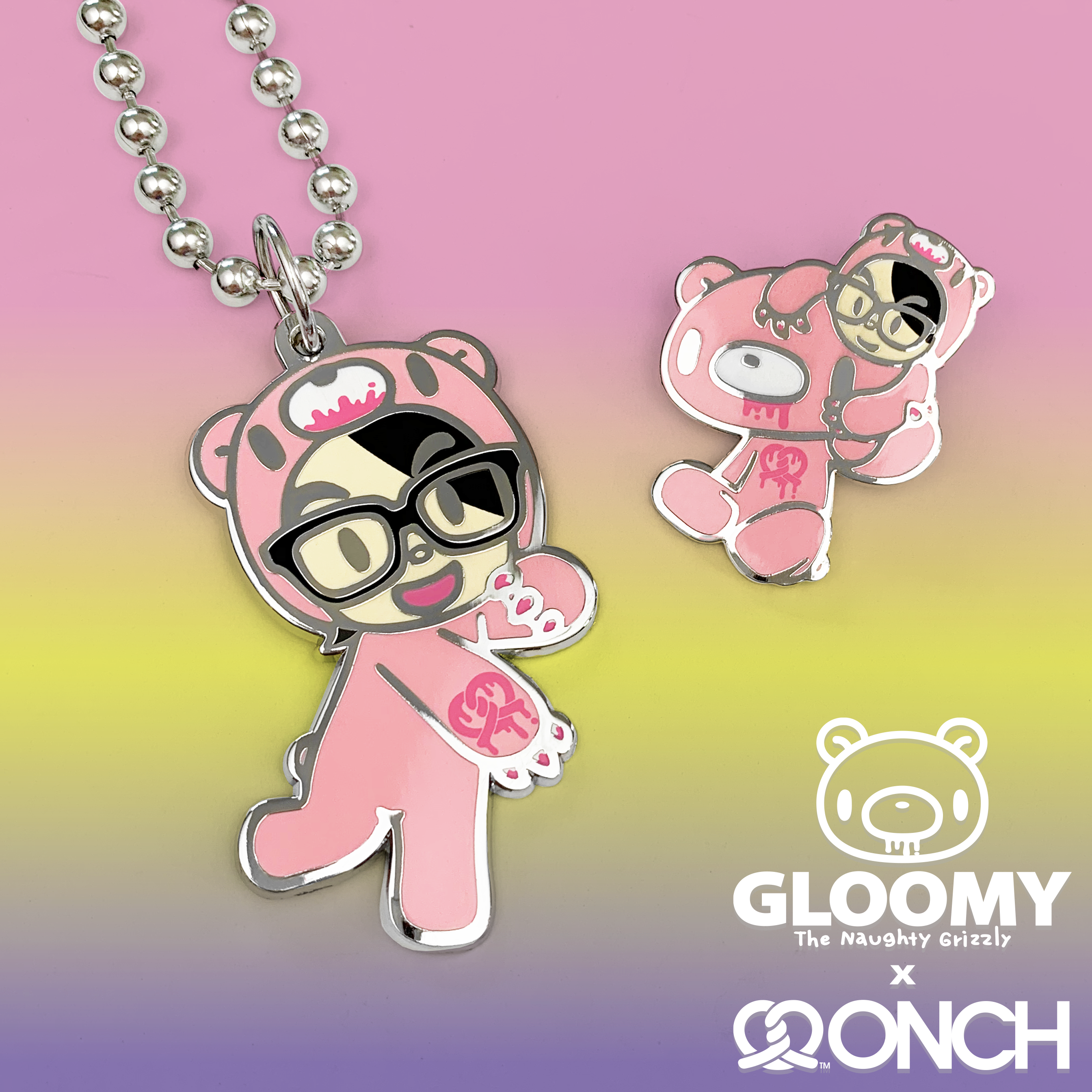 Spring 2021 - Mori Chack, creator of Gloomy Bear, partnered with ONCH for the first-ever American Gloomy Bear jewelry collaboration. Since its origins in Osaka’s streets in 2000, Gloomy Bear’s unique fusion of cute aesthetics with provocative themes has cemented its status as one of Japan’s most iconic pop culture characters. This collaboration marks a milestone, bringing Gloomy Bear’s edgy charm to a new audience through ONCH’s distinctive design vision.