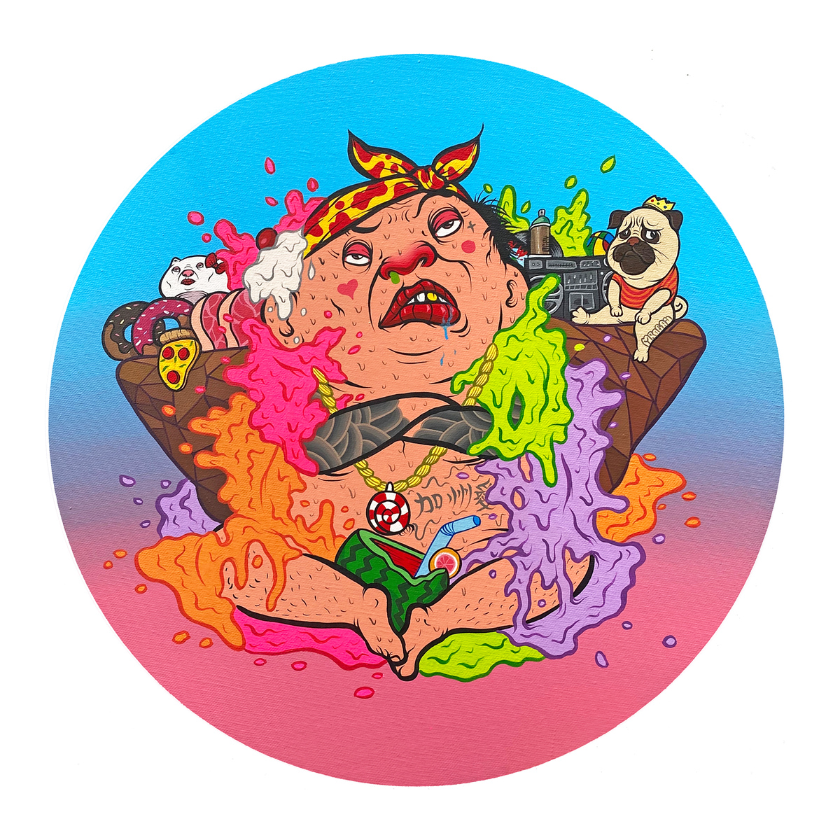 Summer 2020 - ONCH celebrated the 16th anniversary of his brand by curating Sweet 16 Group Show at the Corey Helford Gallery in Los Angeles. The exhibition featured over 40 internationally acclaimed artists—including Simone Legno (Tokidoki), Luke Chueh, Mori Chack (Gloomy Bear), Brandi Milne, Kii Arens, and Paris Hilton—who created original works inspired by ONCH’s signature jewelry.