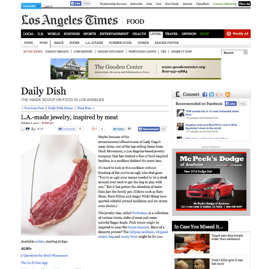 Nicki Minaj famously embraced ONCH’s imaginative and unconventional designs, commissioning a series of custom pieces that would help define her early fashion legacy. She first debuted the ONCH Ice Cream Necklace while accepting Rapper of the Year at the MTV Video Music Awards, instantly capturing media attention. Among their many collaborations, the Pink Fried Chicken Necklace stands out as an iconic pop culture moment—immortalized on the cover of Billboard Magazine and celebrated as one of the most memorable looks in music fashion history.