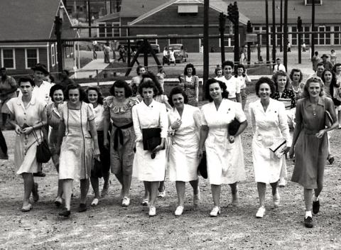 Over 400 WACs served in the Manhattan District, primarily at the three major sites: Los Alamos, Oak Ridge, and Hanford. Hanford had the smallest group of WACs, and Los Alamos had the largest group.