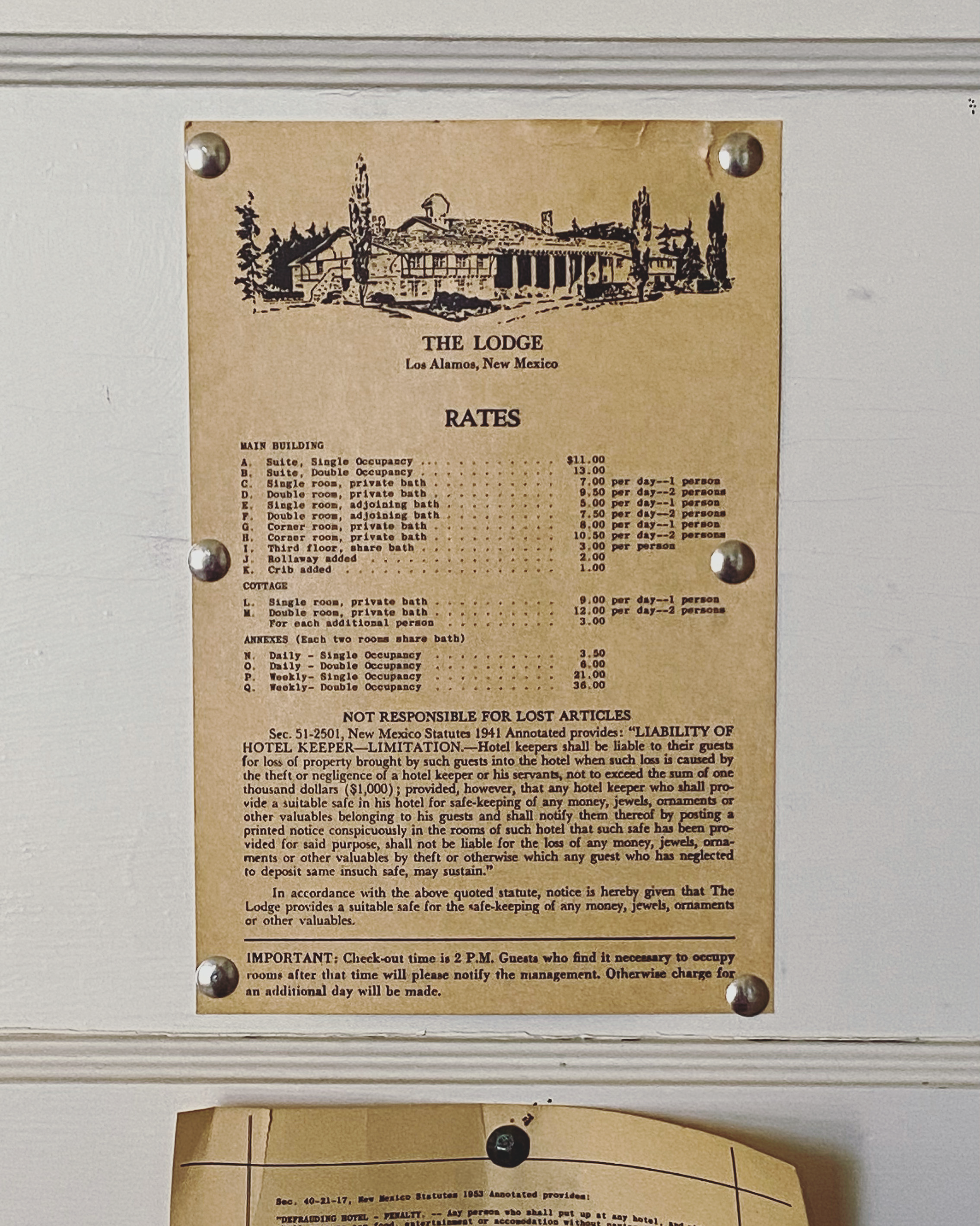 Tickets include museum admission and are available at the Los Alamos History Museum Shop. Tickets are sold until tours are filled. Tours last approximately an hour and a half. Call the Museum Shop ahead of time to confirm your tour schedule and make a reservation.