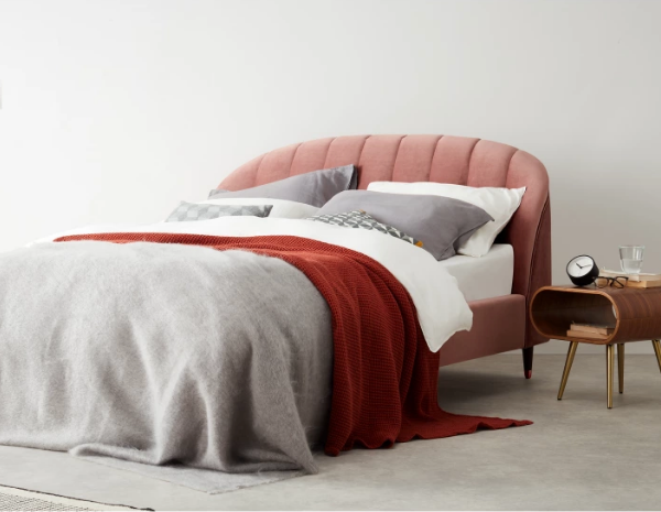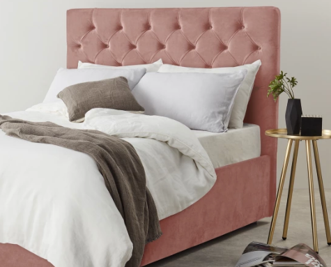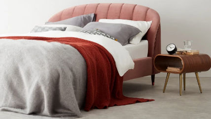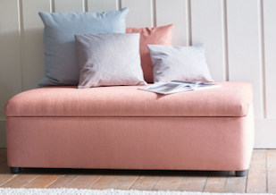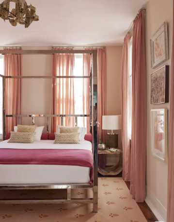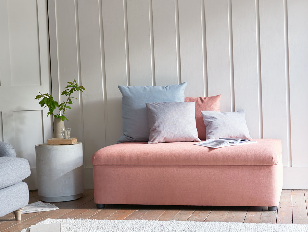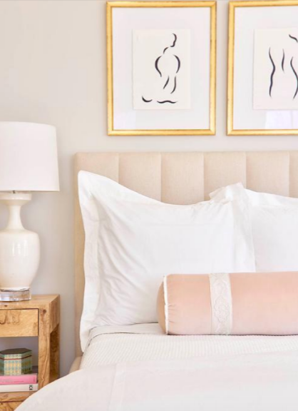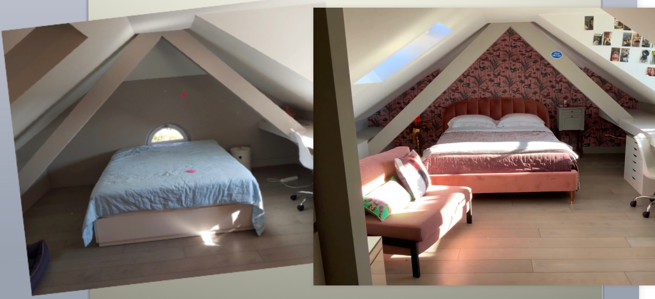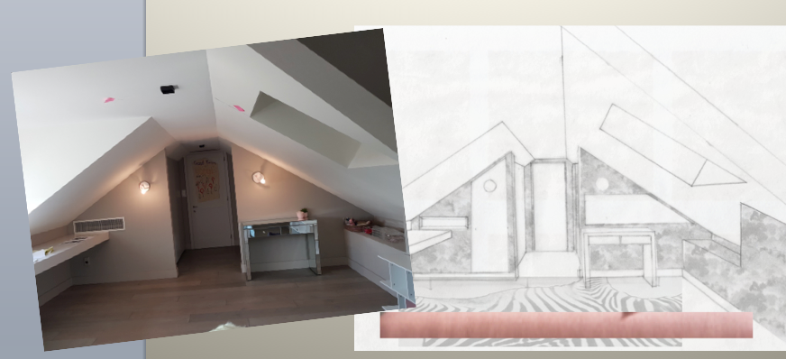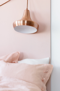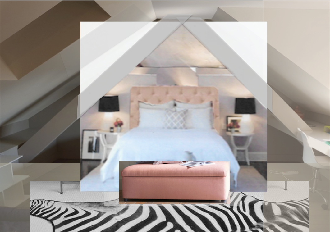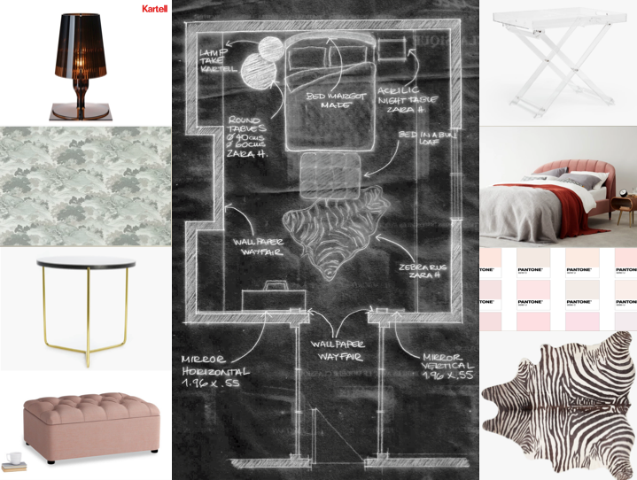 The mood board goes from the tropical guava, to the summery rasberry passing through the light tuscany pink. These tones on the head board, pouf and back wall keep the room calm for Giulia's sacred place.