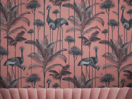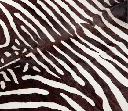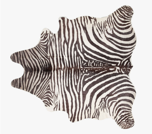 The wallpaper, zebra rug and night tables give the room the necessary spark, with its greys and blacks and whites.