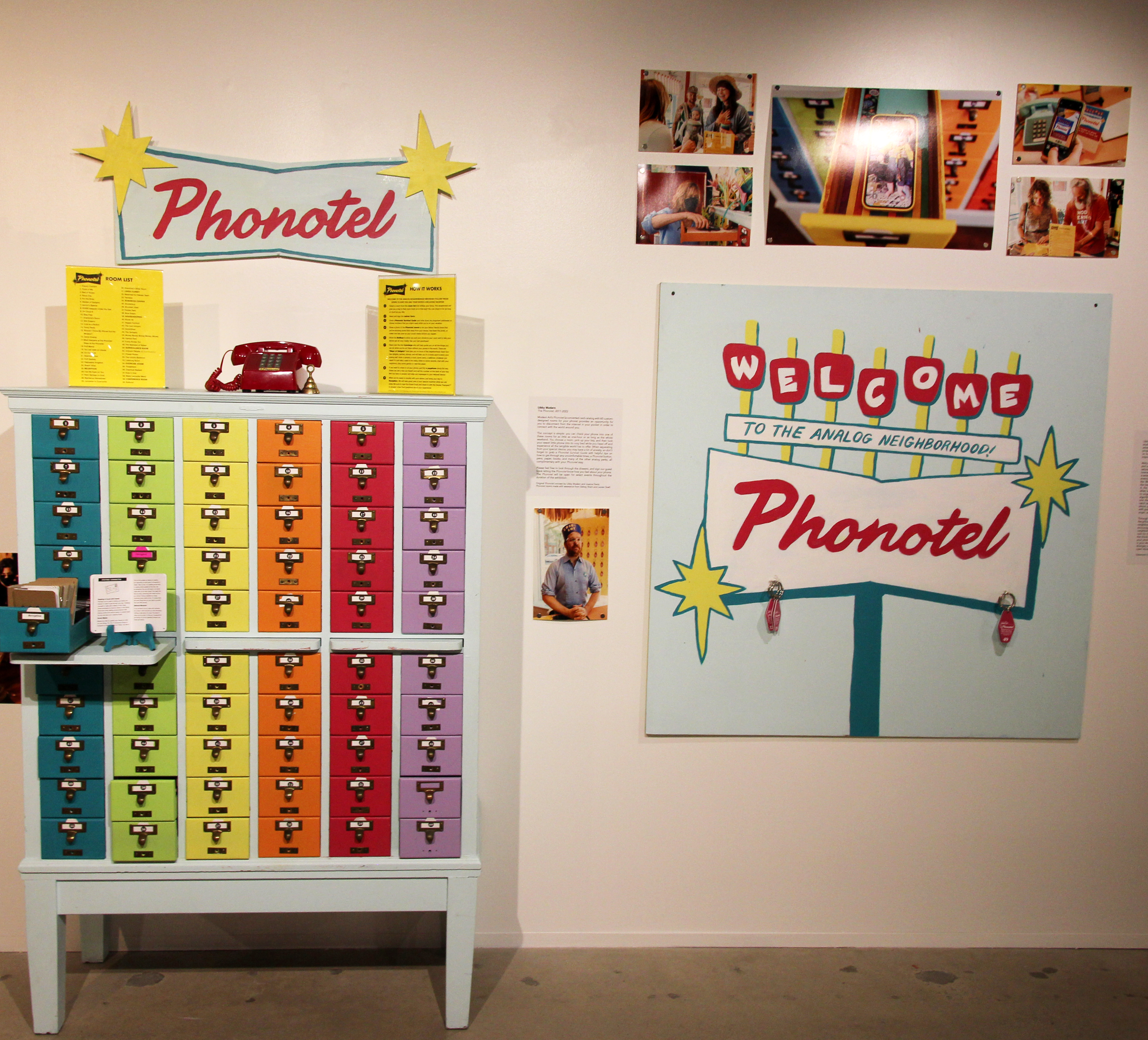Please feel free to look through the drawers, and sign our guest book letting the Phonotel know how you feel about your phone. The Phonotel will be open for select events throughout the duration of the exhibition.