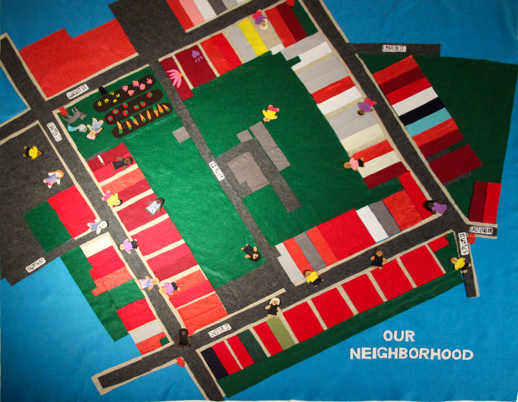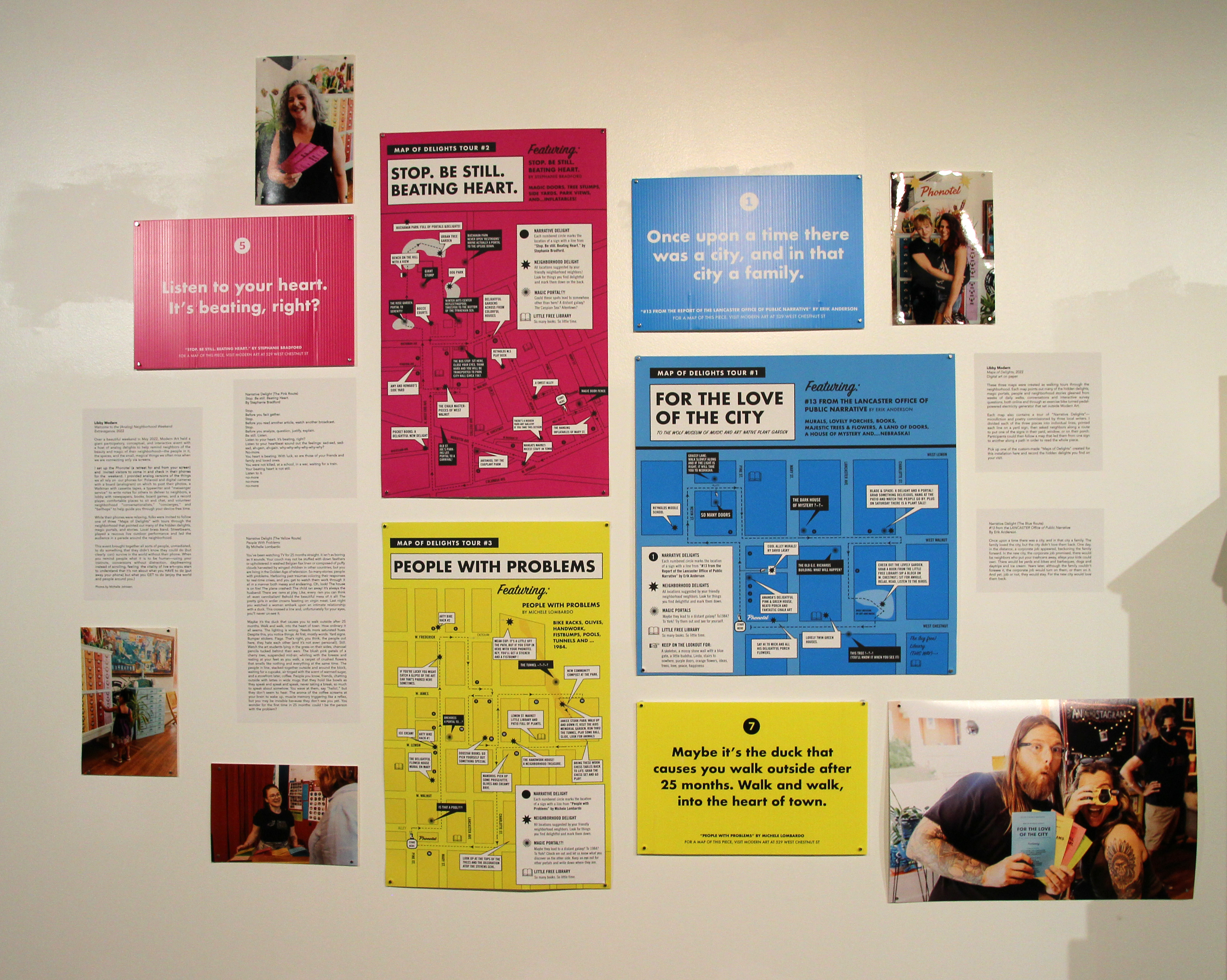 These three maps were created as walking tours through the neighborhood. Each map points out many of the hidden delights, magic portals, people and neighborhood stories gleaned from weeks of daily walks, conversations and interactive survey questions, both online and through an exercise bike turned pedal-powered electricity generator that sat outside Modern Art.