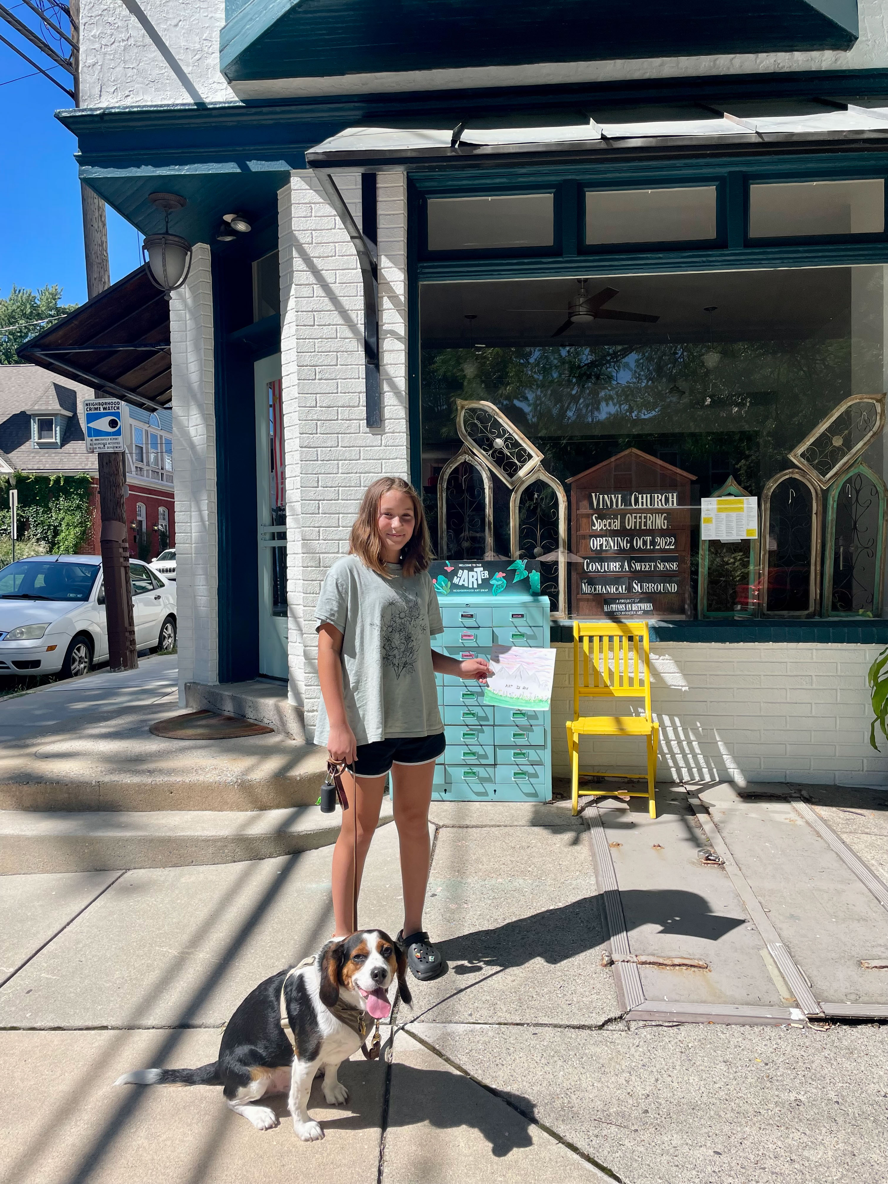Welcome to the (Analog) Neighborhood explores how we think and use our neighborhood in light of this era of technological saturation—how screens and media affect our attention, dictate how we spend our time, and take over our interactions. Through a series of surprising, curious, and unconventional installations, events, surveys, performances in and around my studio in the West End, I’ve worked to reintroduce my neighbors to the beauty and magic of their neighborhood—the people in it, the spaces, and the small, magical things we often miss when we are connecting only via screens. I’ve been working to engage people’s attention from a structure outside of an algorithmic architecture—unmediated by an institution—and one that they don’t have an obvious category for. This can catch people off guard, giving them an opportunity to think about, and interact with their neighborhood differently. Ideally with poignancy, humor, delight, and agency, rather than rage, angst, and frustration with an imperfect world.