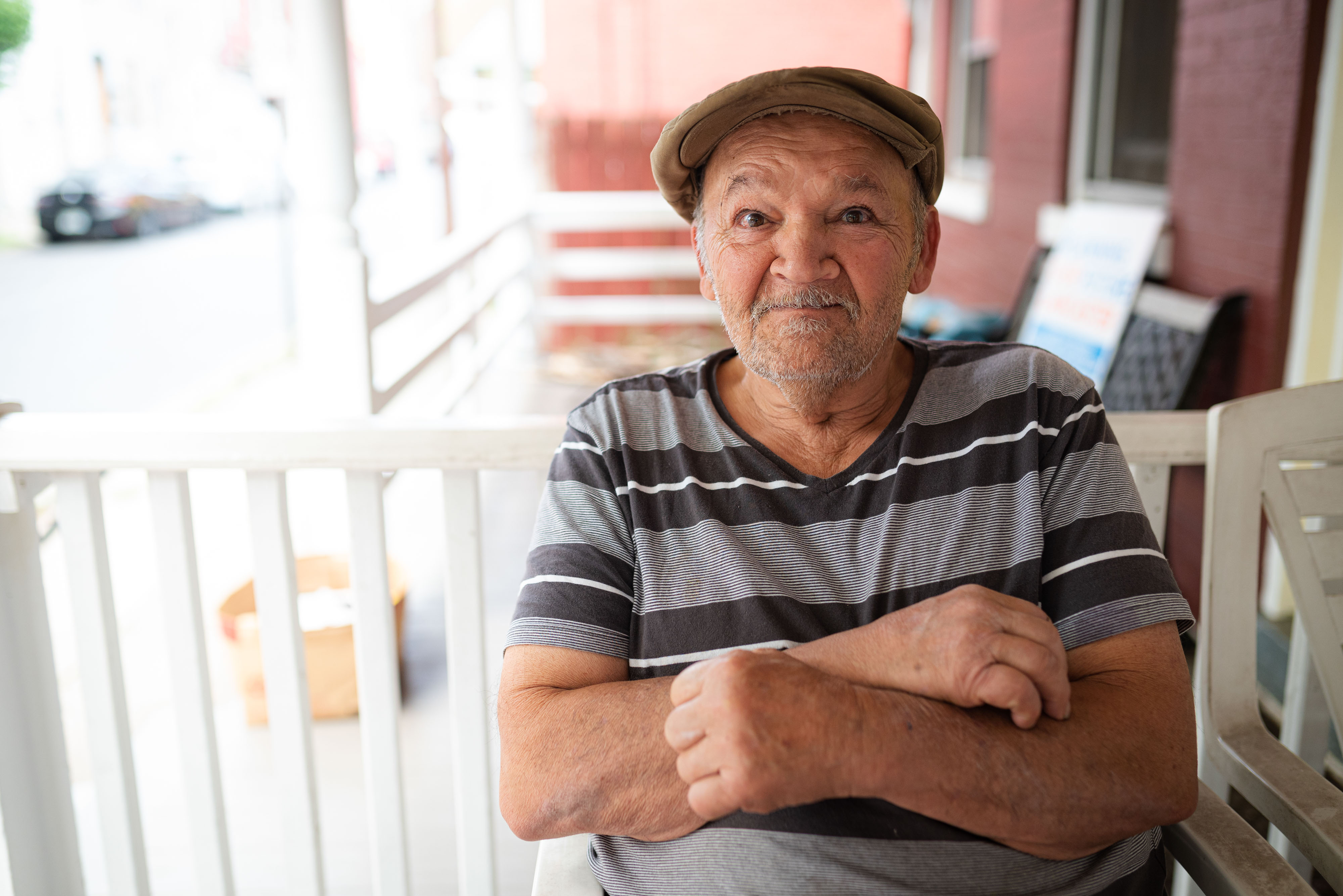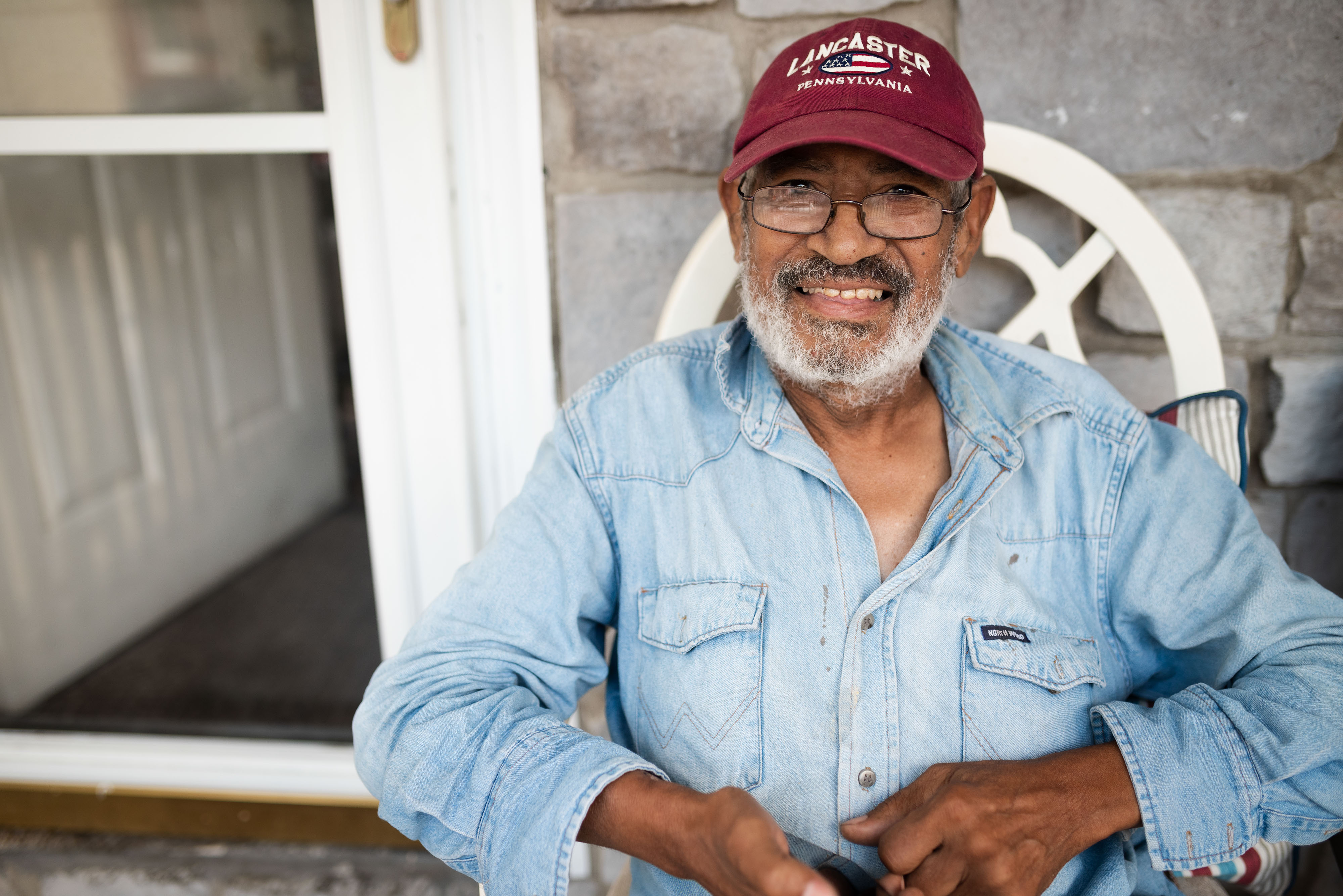 It’s quiet here. It’s just nice and quiet. I sit in the front in the daytime and outback at night. I like to talk to anybody who comes by. Sometimes they sit and talk and I talk. I enjoy life, just living.