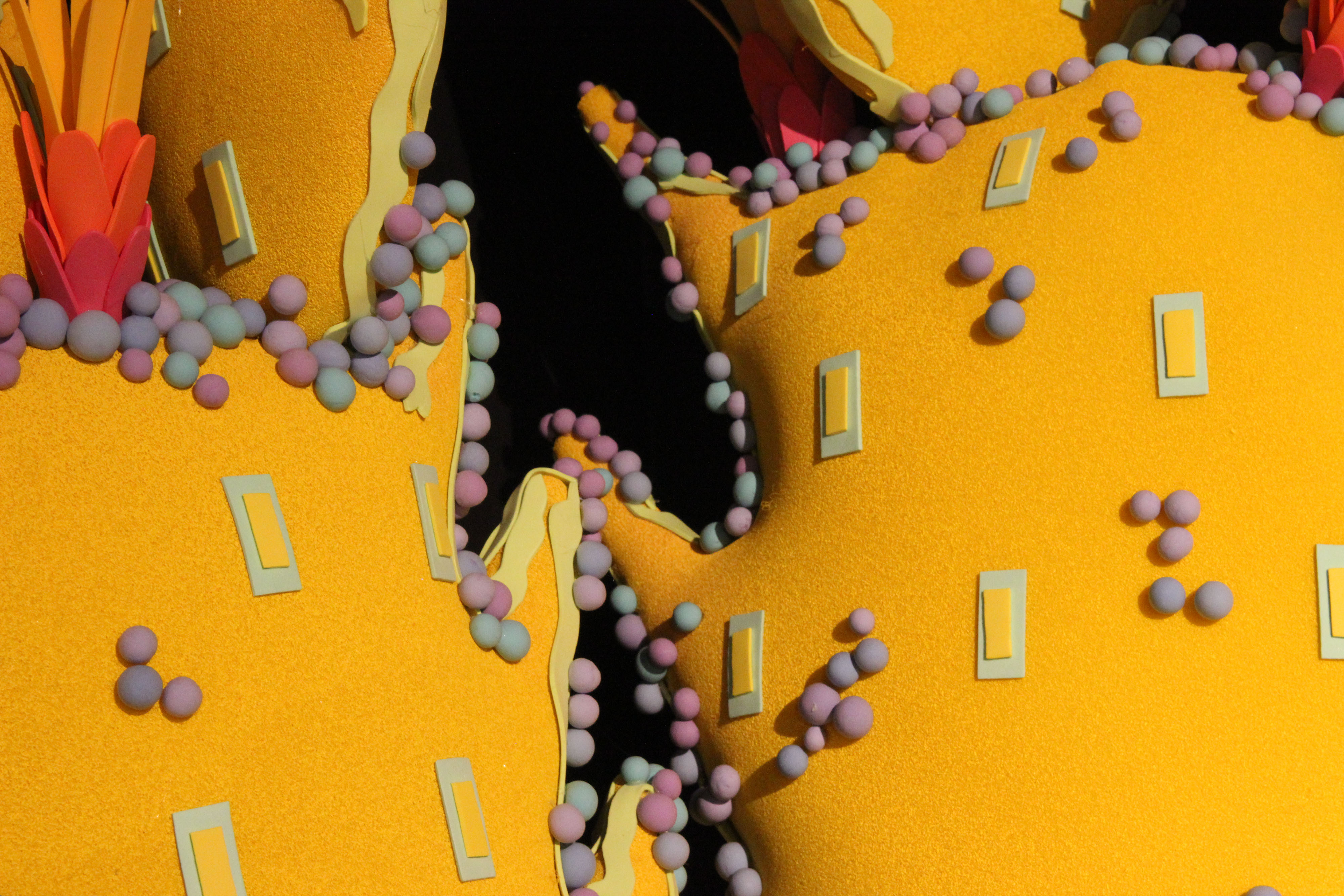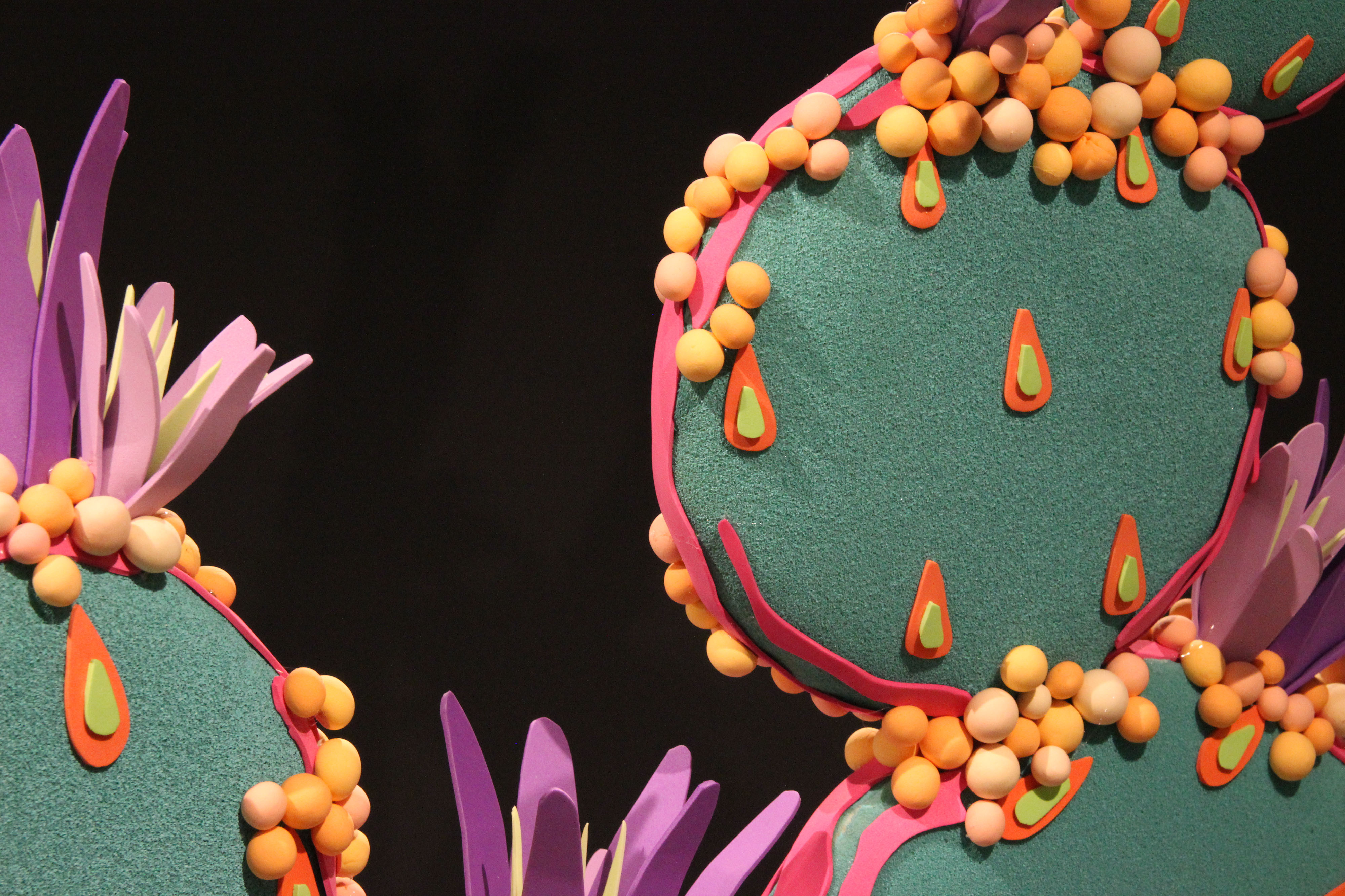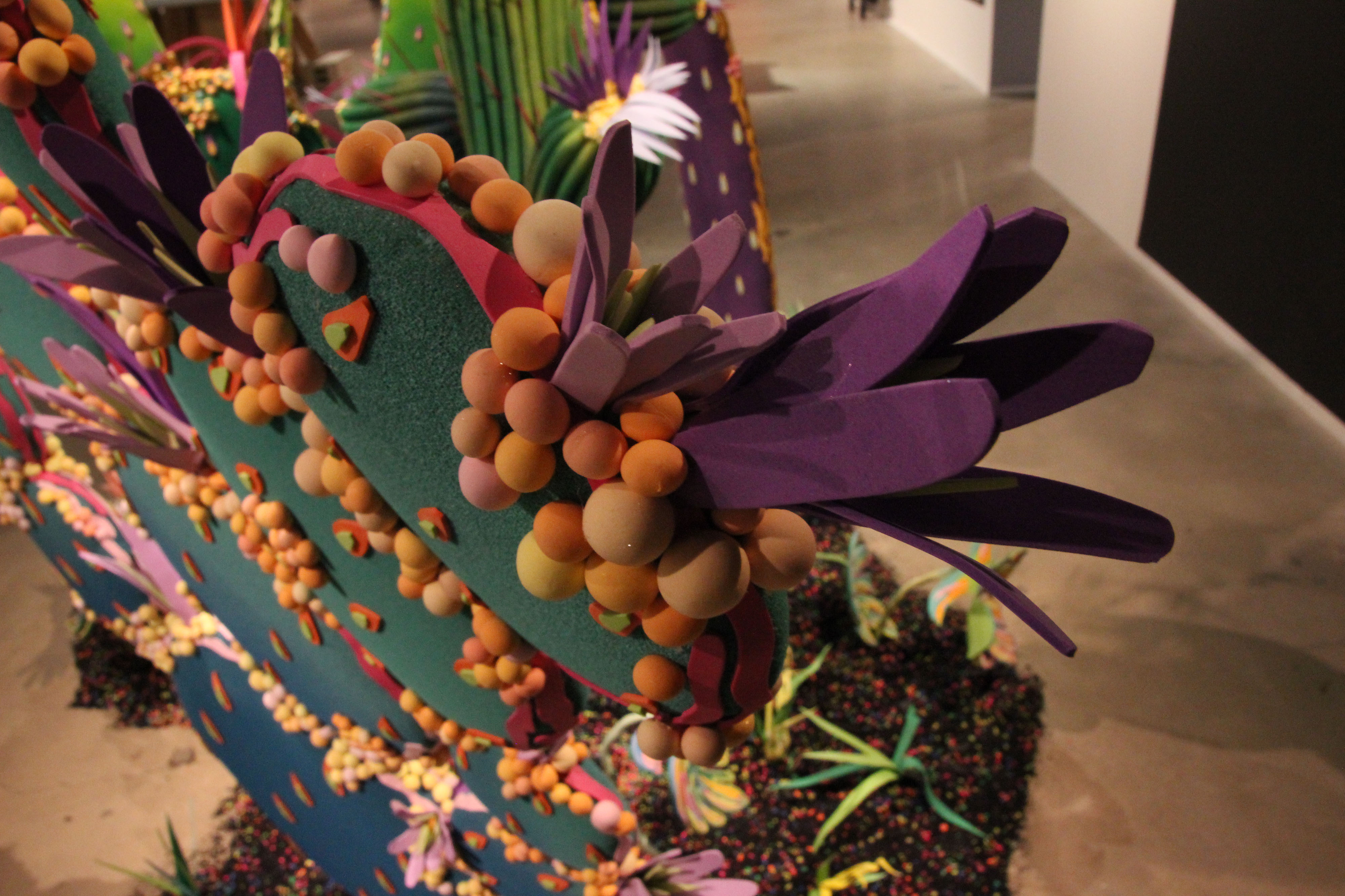 Working in the realm of sculpture, Matty Geez’s pieces are three dimensional but maintain a kinship to two-dimensional works. Some are truly free standing while others are meant to be displayed on a wall, even though their surface has a relief quality. His works verge on the edge of fantastic while holding onto familiar botanical shapes. Juxtaposition of hard and soft along with the use of color explores gender identities and breaking the binary. Through the PACE Program with Lancaster City, he has collected information about queer businesses, people, and gathering spaces; tracking the relationship the queer community has with Lancaster as a whole. Results show the biggest asset to LGBTQ+ people is other like minded individuals who will build up and support the community and share in its visibility and empowerment. Although Lancaster has come a long way, it’s important to keep investing in queer health services, sober meeting spaces, and safe spaces for members of this marginalized group.