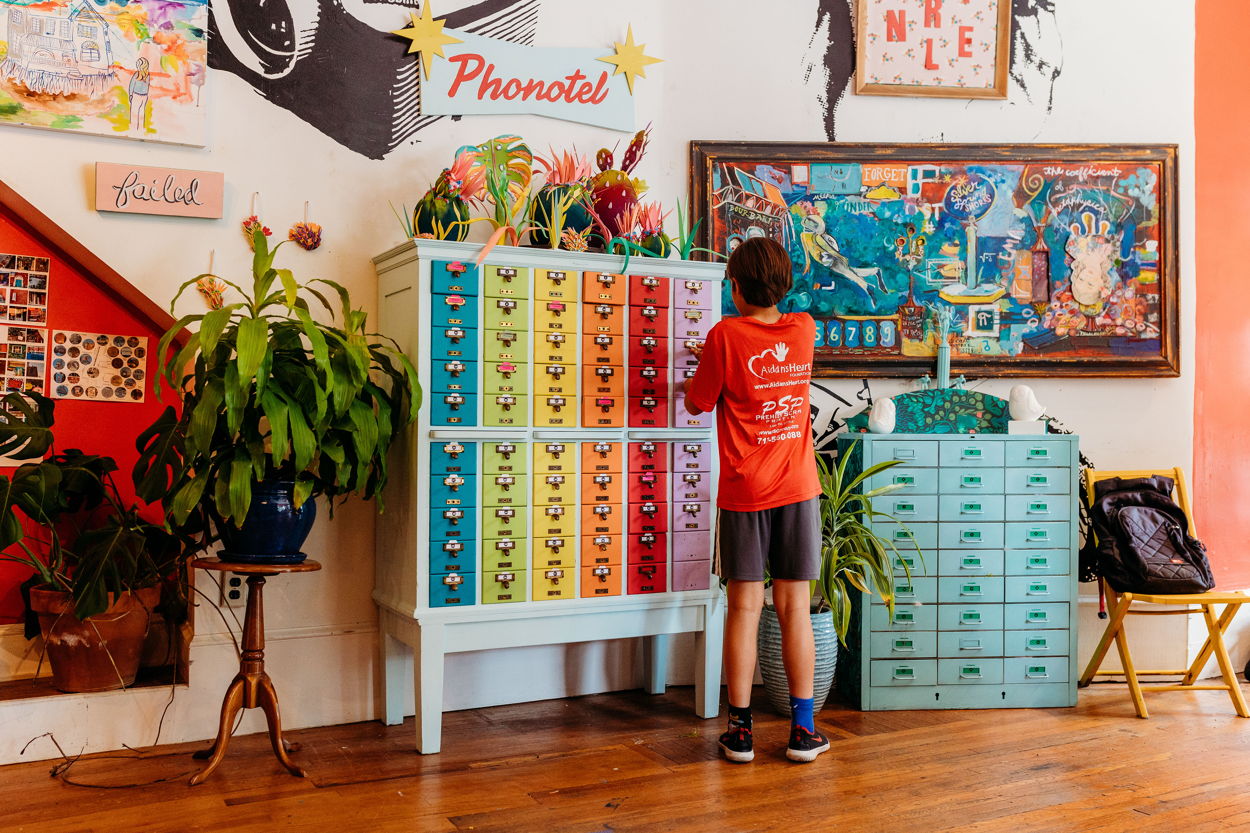 Modern Art’s Phonotel (a converted card catalog with 60 custom-designed rooms for your phone) provides an opportunity for you to disconnect from the internet in your pocket in order to connect with the world around you.