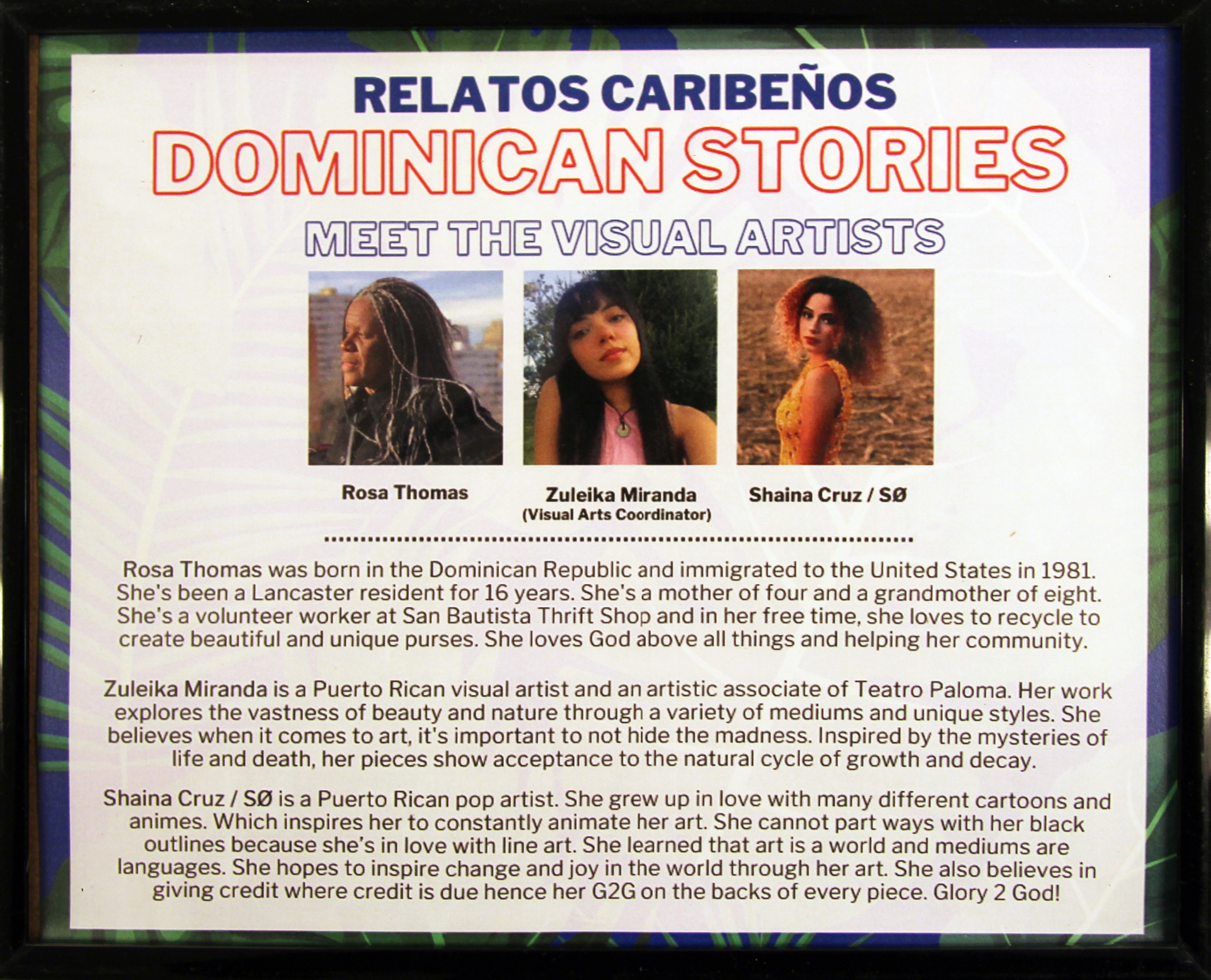 Teatro Paloma’s anthology Relatos Caribeños is a story-relating project that centers on the collection, archival, and celebration of underrepresented local stories and creatives from the Caribbean Latinx diaspora. Through the making of accessible theater opportunities, facilitating community workshops, and organizing panels on immigration advocacy led by Latinx community leaders, we worked on establishing a constellation of creatives from various backgrounds to uplift these stories.