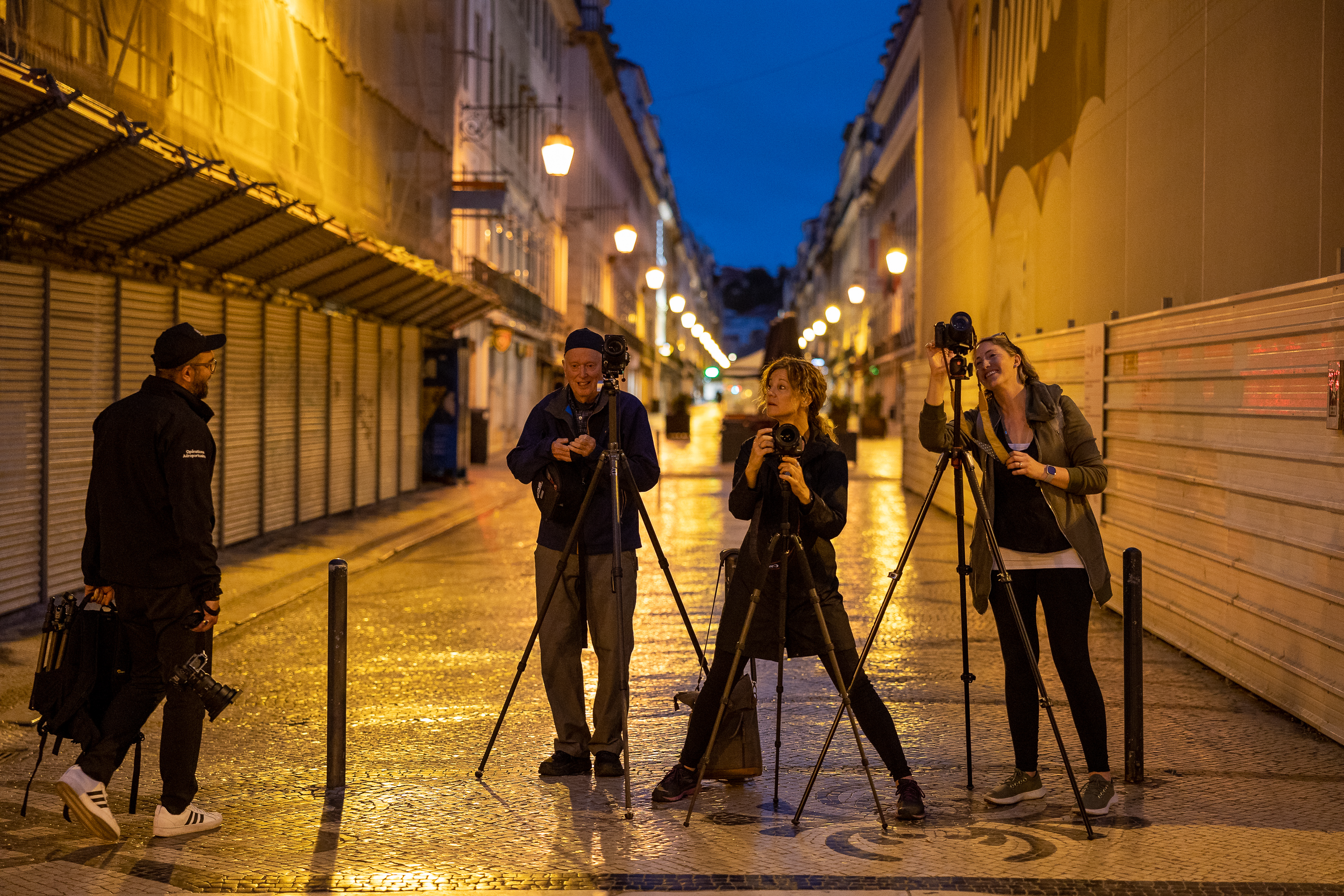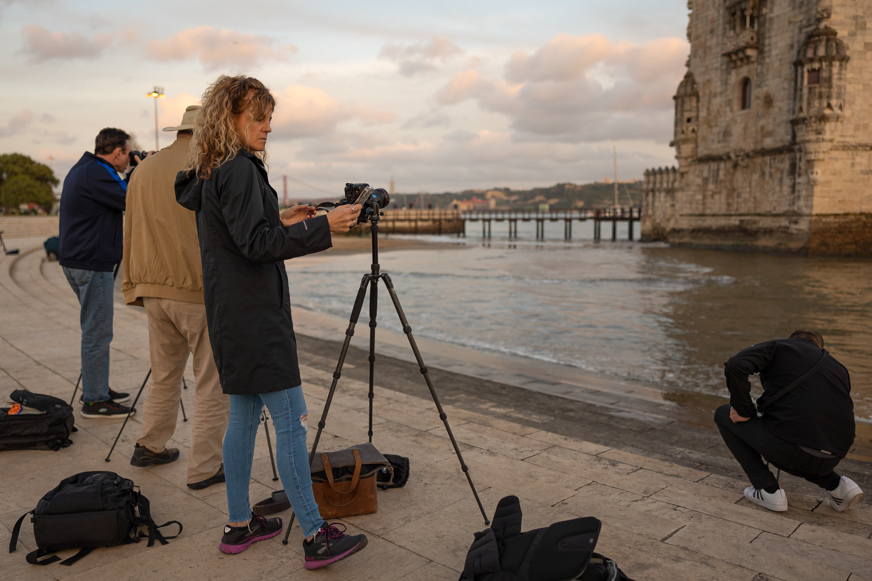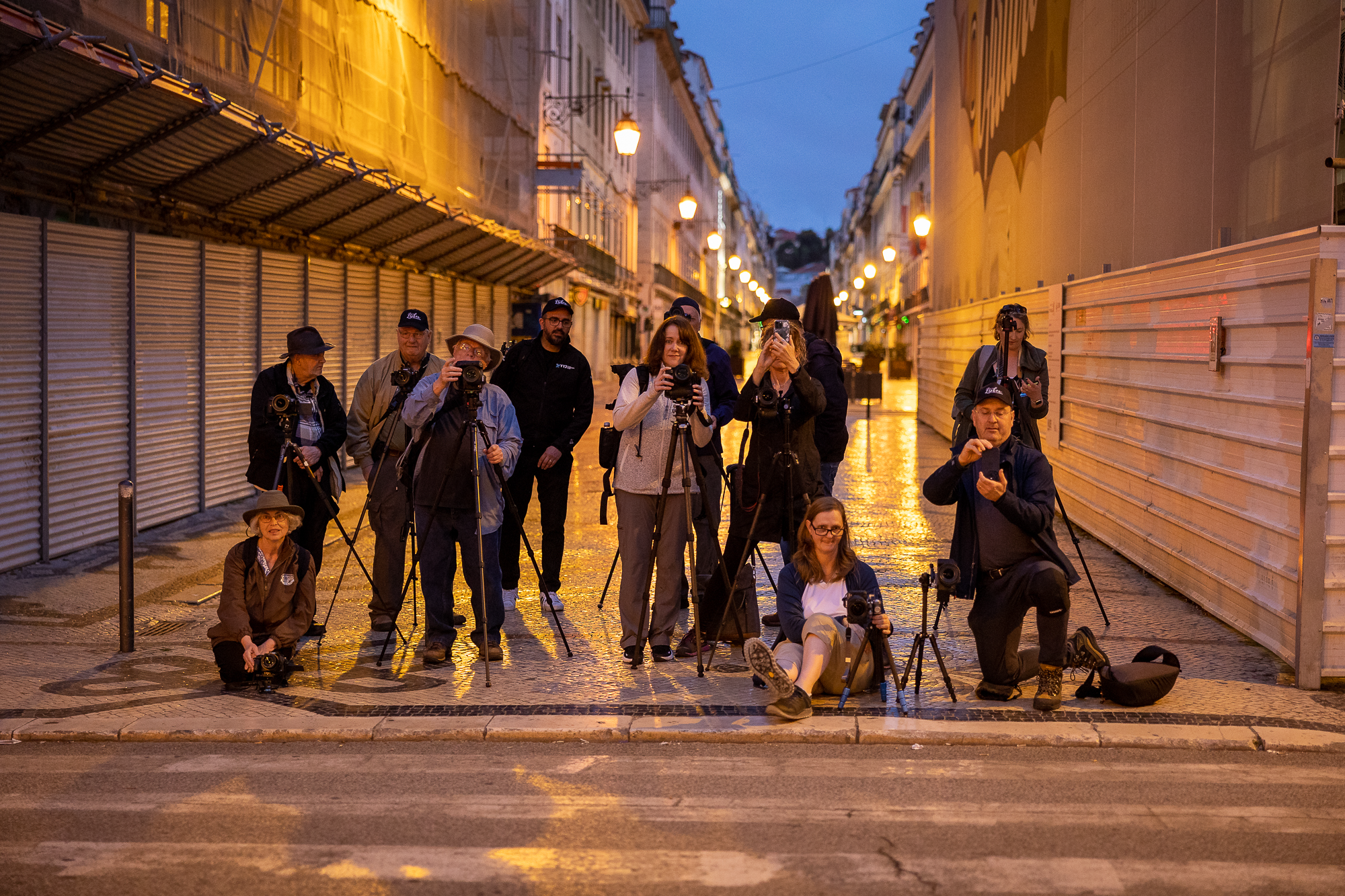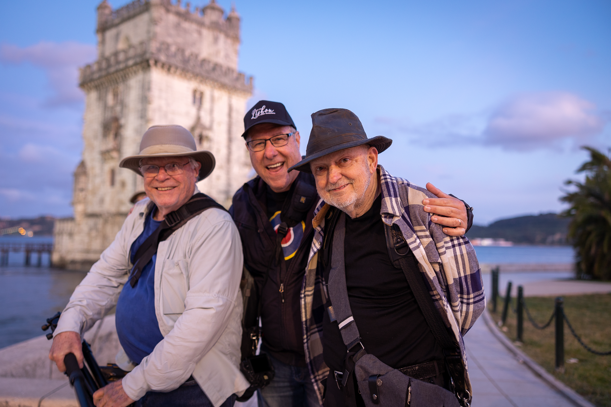 Here's a few shots of the group – the top one is us at the opening night dinner. Below that a few of the gang at Belem Tower, and bottom right us at our last morning's dawn shoot.