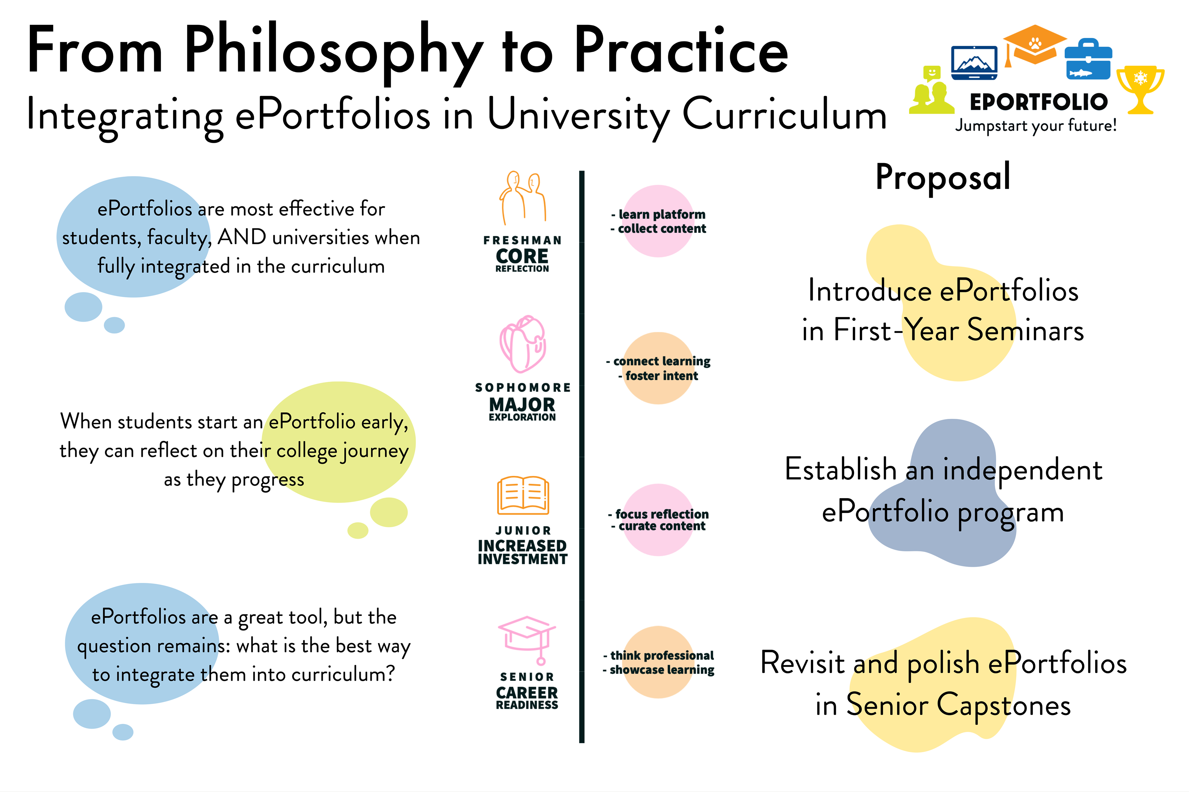 ePortfolios are important educational tools that foster engagement, active learning, and retention at universities. They are most effective when integrated into the existing curriculum; however, the integration process can pose challenges that limit the potential of these learning tools. My research examines the methods used to implement ePortfolios at colleges and universities, including testimonies on efficient practices and reported mistakes, to help create a more efficient integration plan. This information then informs a curriculum integration proposal specific to Montana State University in alignment with MSU’s already robust Core requirements and qualities. ePortfolios can enhance these learning goals by improving university assessment of student achievement of Core qualities, by assisting professors in emphasizing the importance of these qualities in the classroom, and by allowing students to better understand the educational merits of Core requirements. To this end, the best place to introduce ePortfolios into the curriculum is in first-year seminars and in senior capstones. MSU’s ePortfolio program is still in its infancy, but it has already demonstrated great potential for students, faculty, and staff. Successful integration of ePortfolios into MSU's curriculum can serve as another example for other universities, helping to bring high-impact learning practices to students and institutions internationally. To view the whole paper, follow this link: Full Capstone Paper.