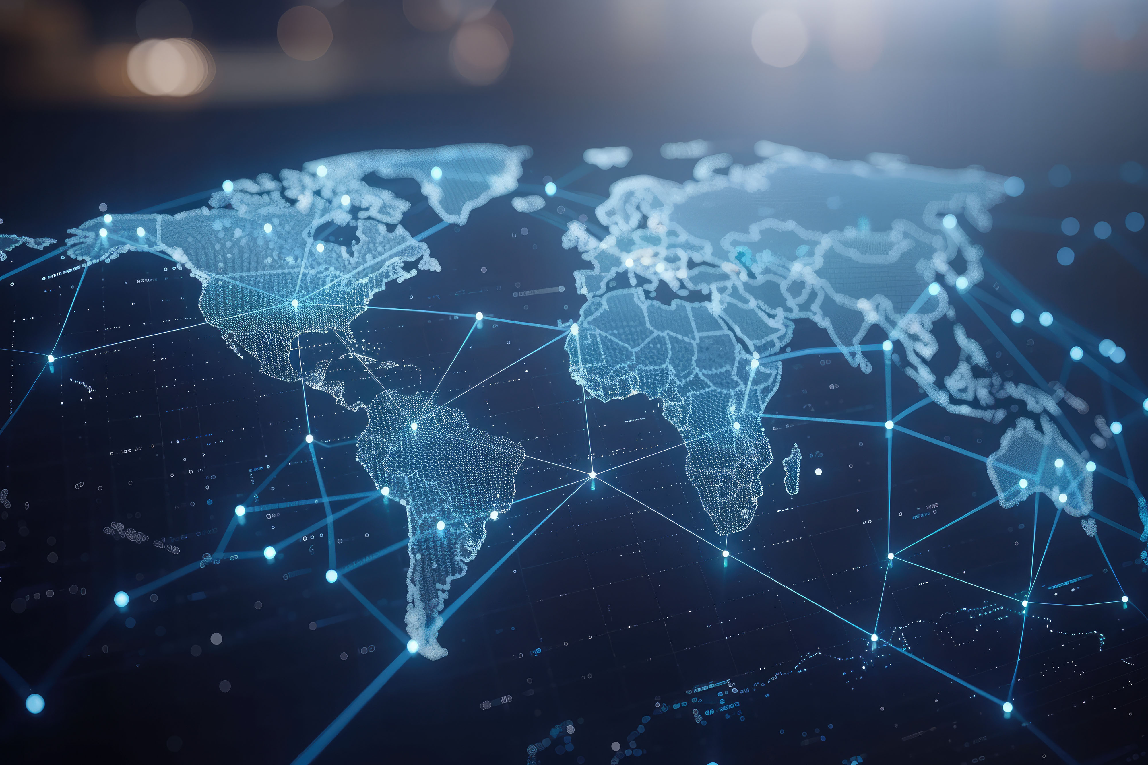 Created with images by Wasin Arsasoi - "A light blue background with a digital world map and global network connections, representing the concept of international business or connectivity Generative AI." • Papisut - "generative ai overview for project managers fund invetment and data analysis." • Banstanks - "hand shaking between human and digital hand, integration between human and artificial intelligence." • Daria - "Robot and human hands connect on customer support network, showcasing automation and ai efficiency" • Daria - "Robot and human hands connect on customer support network, showcasing automation and ai efficiency" • Starmarpro - "ai concept.,Hand of android or ai touching abstract network.,High quality photo" • Johannes - "business audit stock financial finance management on analysis data strategy with graph accounting marketing or report chart economy investment research profit concept generative ai" • Rawpixel.com - "Robot hand showing background, 3D AI technology side view" • PixxStudio - "Reflection Abstract digital world map, concept of global network and connectivity on Earth, data transfer and cyber technology, information exchange and international telecommunication, Ai" • Stock photos - "Futuristic Digital World Map – Global Network and Technology Concept" • KaihkoImages - "Digital world map - global data monitoring background" • NikahGeh - "A future user interface and interconnecting map of the world"
