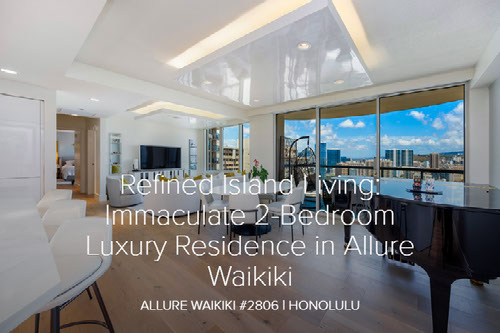 Nestled between Waikiki and Ala Moana, this residence is just blocks from Waikiki Beach and viewing Friday night fireworks. Allure Waikiki provides resort-style amenities including a pool, fitness center, BBQ cabanas, and 24-hour security. Combining quality, comfort, and value, this is a rare find for discerning buyers in a premier Waikiki address.