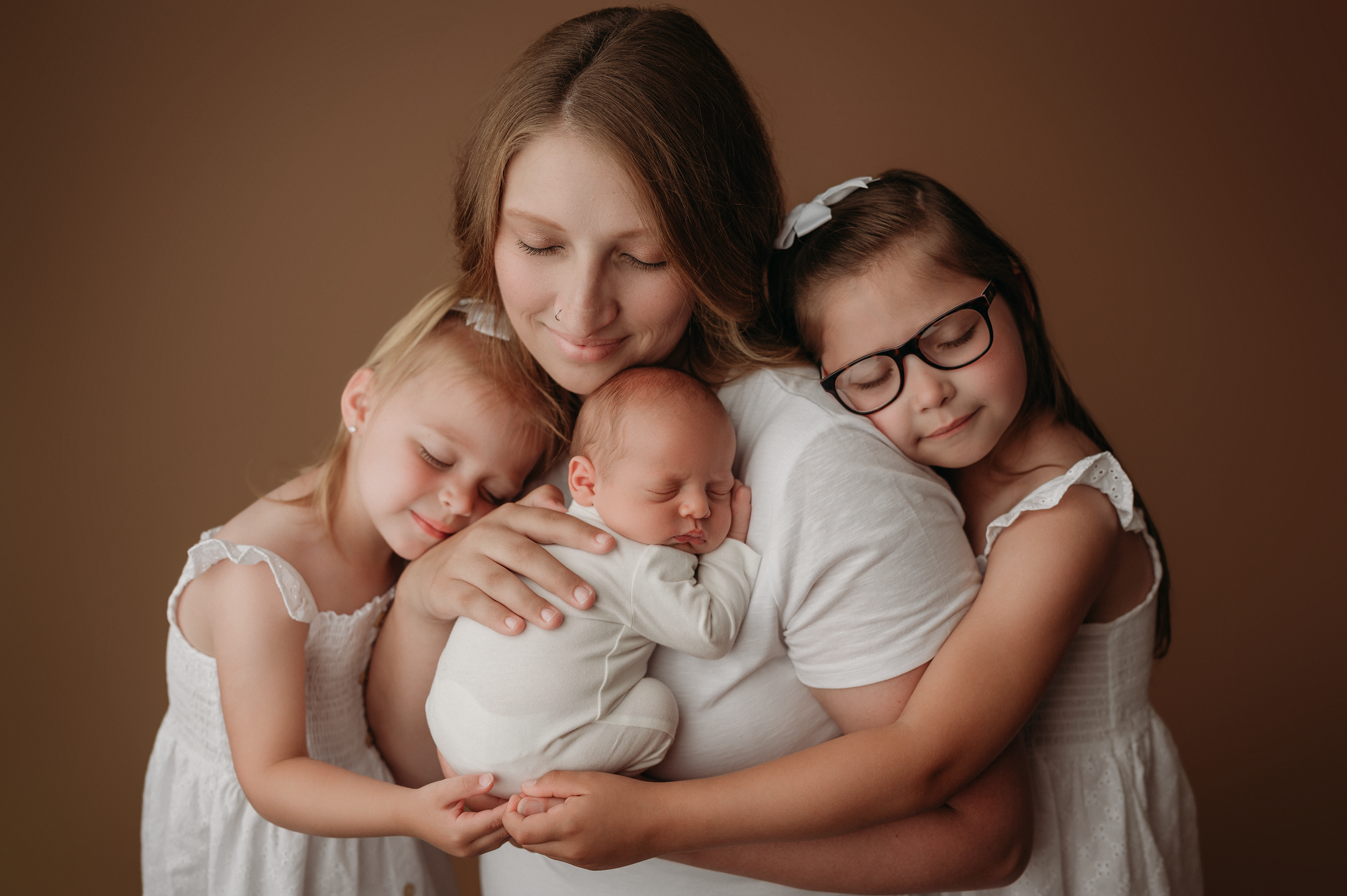 Family and sibling poses will be shot first and then plan to have one parent or a family member take them home. That way they don't get bored and we focus the rest of the session on individual pictures of the baby. There are times when siblings are not interested in the baby or taking pictures with the baby. I will try my best to allow for siblings to warm up so that a safe image can be taken with the new baby. Safety is my priority! I cannot guarantee a successful sibling pose!