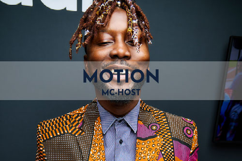 Distinctively potent and dynamic, Motion has graced the stage with Davido, Talib Kweli, Teni the Entertainer, Jidenna and Nana Kwabena (Chiefy Chiefy) and has MC'ed some of the biggest events in the U.S & globally including recently the U.N General Assembly events, Southouse & Afrolituation, Nwali Fest (South Africa) and the legendary Essence Festival!
