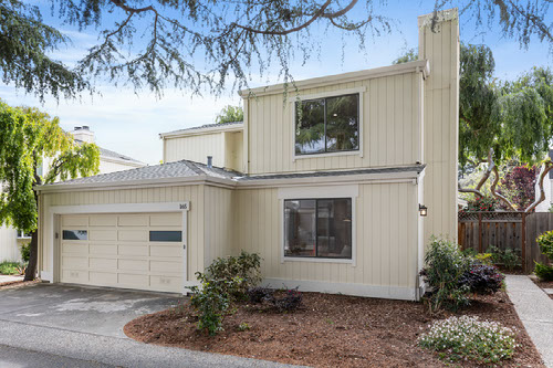 With the ambience of a single family home, this separate free-standing townhouse shares no walls with neighbors. One of only two extra-large free-standing units in the small 14-unit complex. This quality home of 1743 sf has been beautifully remodeled and updated with 3 bedrooms and 3 full baths. Open and spacious floor plan, large living room with gas fireplace, separate dining room/home office, remodeled kitchen with granite counters, stainless steel appliances, ample cabinets and garden window - adjoining dining/family room opens to a large and private backyard with patio and mature tree. Spacious master bedroom with balcony, generously sized walk-in closet and exquisitely remodeled master bathroom includes free standing tub, double sinks, Hansgrohe shower fixtures, Porcelanosa tile and Toto toilet. Additional hallway bath and main floor bath are also fully remodeled. Two-car attached garage with lots of room for extra storage, central AC and whole-house recessed lighting in a flowing floor plan for easy and comfortable living. Nestled in a well-established Mountain View community, a real gem and a must see, within walking distance to Stevens Creek Trail plus all the amenities of downtown Mountain View including shops, restaurants and the farmer’s market. Easy commuting to major tech companies plus nearby access to VTA Light Rail and Caltrain.