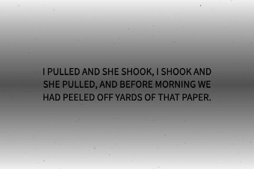 I pulled and she shook, I shook and she pulled, and before morning we had peeled off yards of that paper.