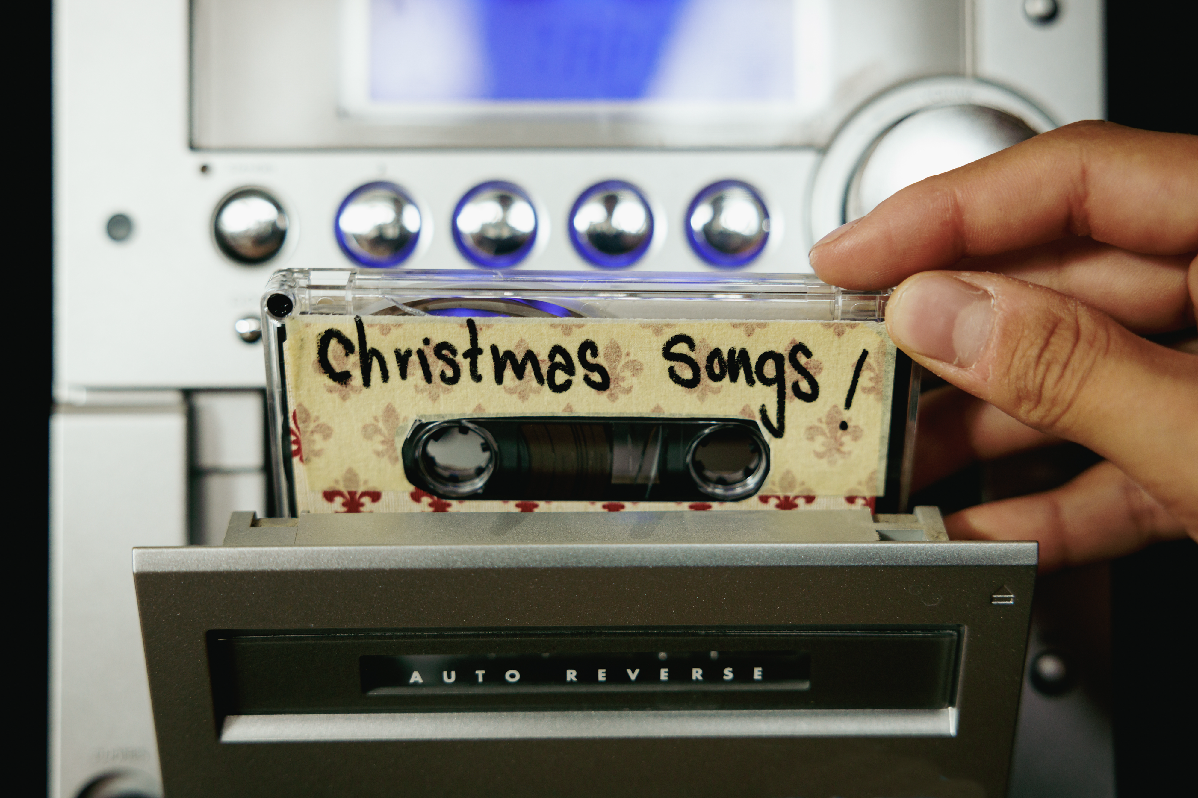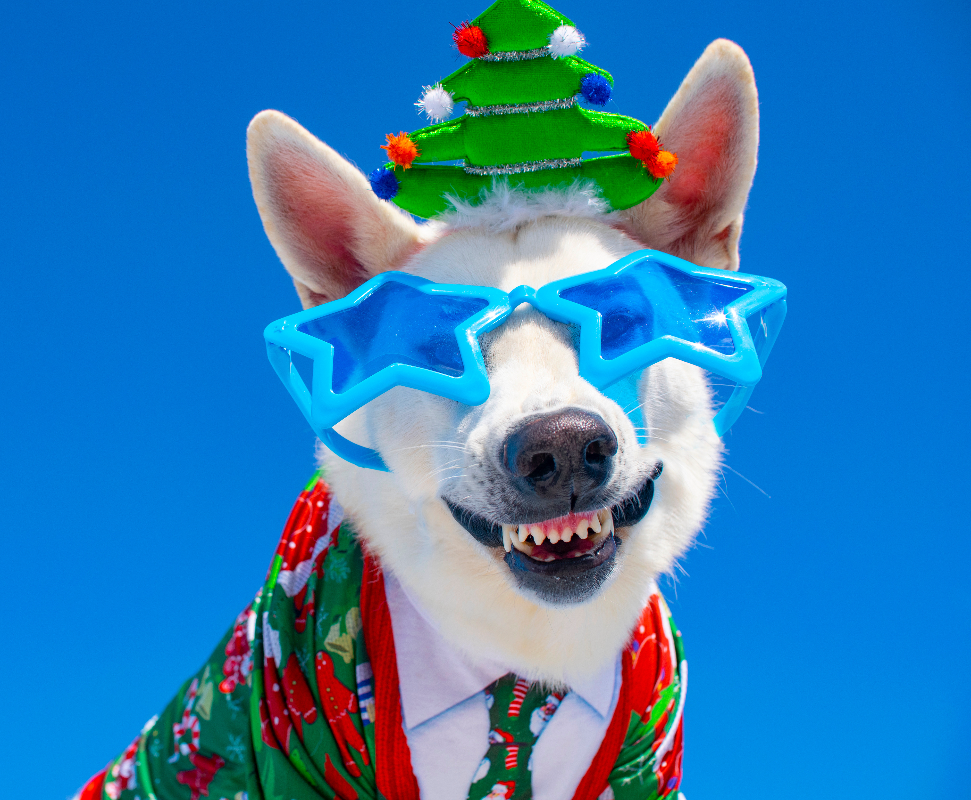 Created with images by Amparo Garcia - "Close up from hand and cassette tapes with Christmas songs" • Natallia Vintsik - "funny dog with sunglasses and christmas costume on isolated white background" • Pixel-Shot - "Cool Santa Claus showing "devil horns" on pink background, back view" • vegefox.com - "An image of multiple stars scattered on a black background, with golden and white shades." • ohenze - "Mohnfeld bei Sonnenuntergang im Harz" • ecrow - "The remembrance poppy. Poppy Day background. Remembrance Day - Lest We Forget"